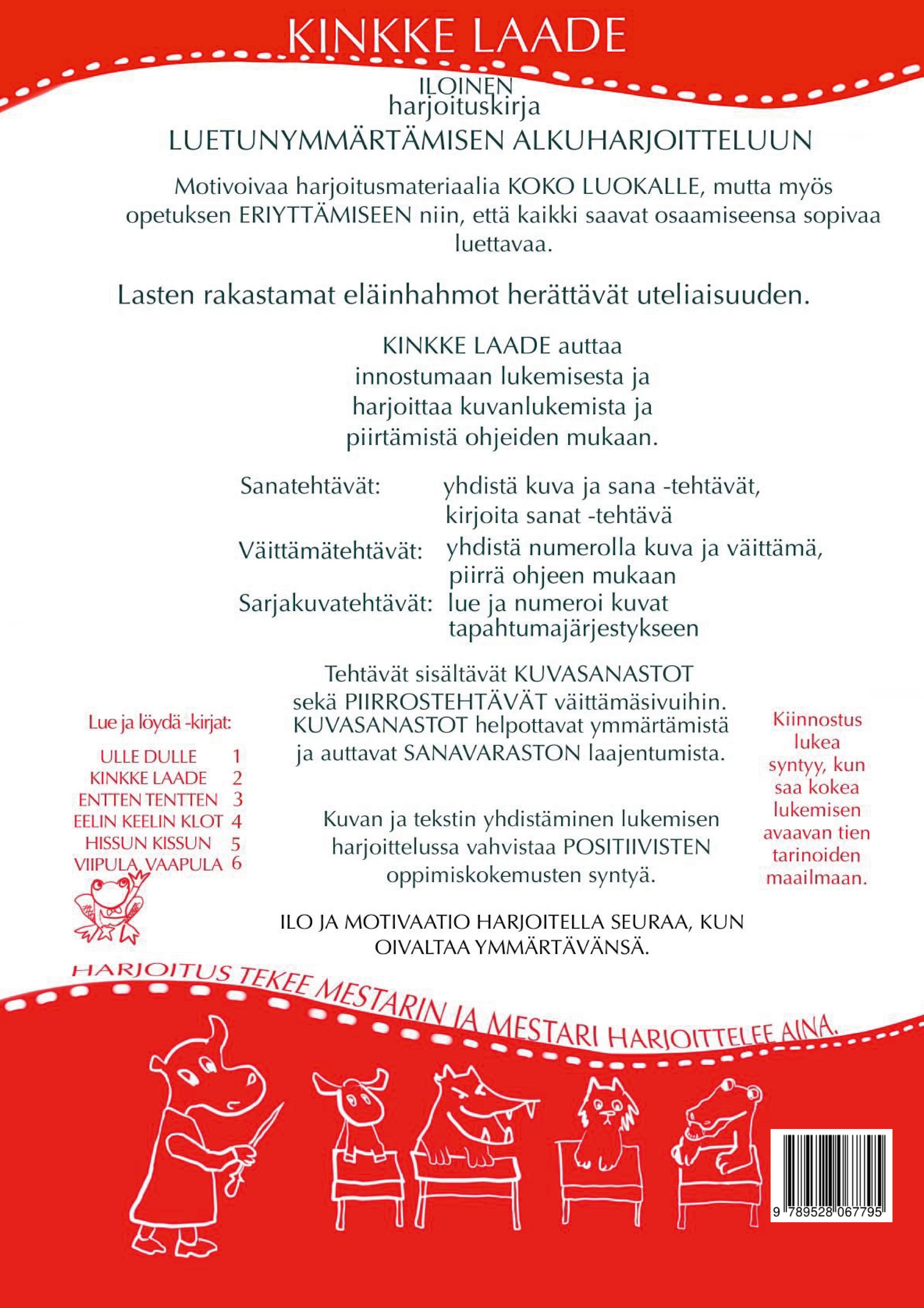 Kinkke Laade auttaa innostumaan lukemisesta ja harjoittaa kuvanlukemista ja piirtämistä ohjeiden mukaan.