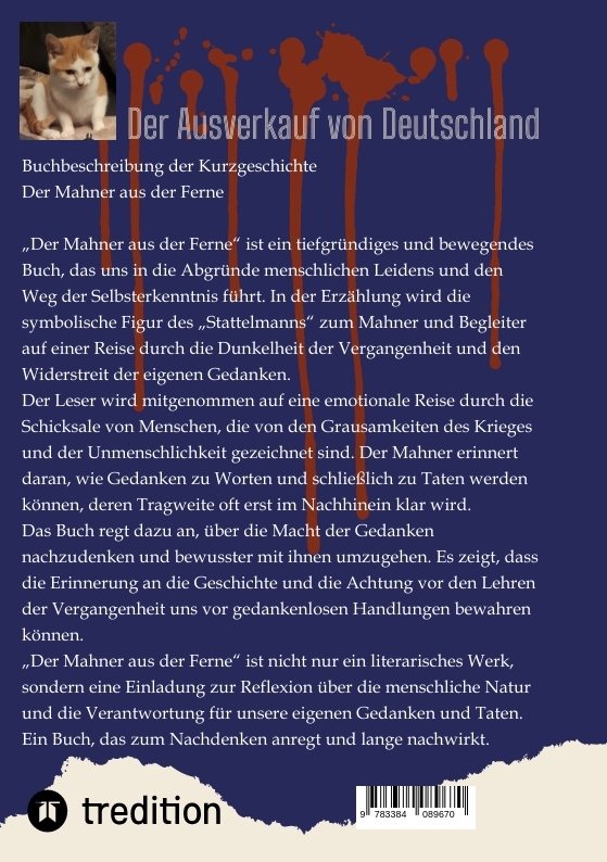 | Schlagworte | Abgründe der Vergangenheit • Achtung vor den Lehren der Vergangenheit • Bewältigung von Traumata • Erinnerung an die Geschichte • Gedankenlosigkeit und deren Tragweite • Grausamkeiten und Unmenschlichkeit • macht der gedanken • Menschliches Leiden • Nachdenken über das menschliche Dasein • Reflexion über die menschliche Natur • Schicksale im Krieg • Selbstreflexion • Suche nach Selbsterkenntnis • Symbolische Figur "Stattelmann" • Verantwortung für Gedanken und Taten |