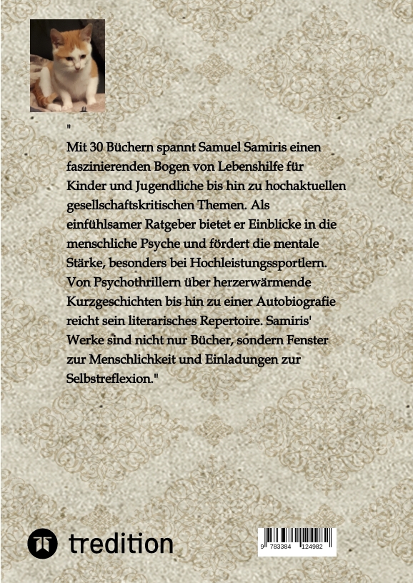 Samuel Samiris Schreibt vorsichtshalber unter einem Pseudonym. Sein Traumata verarbeitet er in all seinen Büchern, die alle nach und nach veröffentlicht werden. Andere sich darin spiegeln können und lernen mit einem ähnlichen Schicksal umzugehen. Seine Erlebnisse sind hart und haben ein Lebenslang an ihn gezerrt. Doch mit Hilfe der Psyche und der Selbstreflexion kann er heute über so vieles schreiben. Dies schreiben über das erlebte hilft Samuel Samiris alles aufzuarbeiten. So ist er heute ein sehr starker Mensch der vor nichts mehr Angst hat.