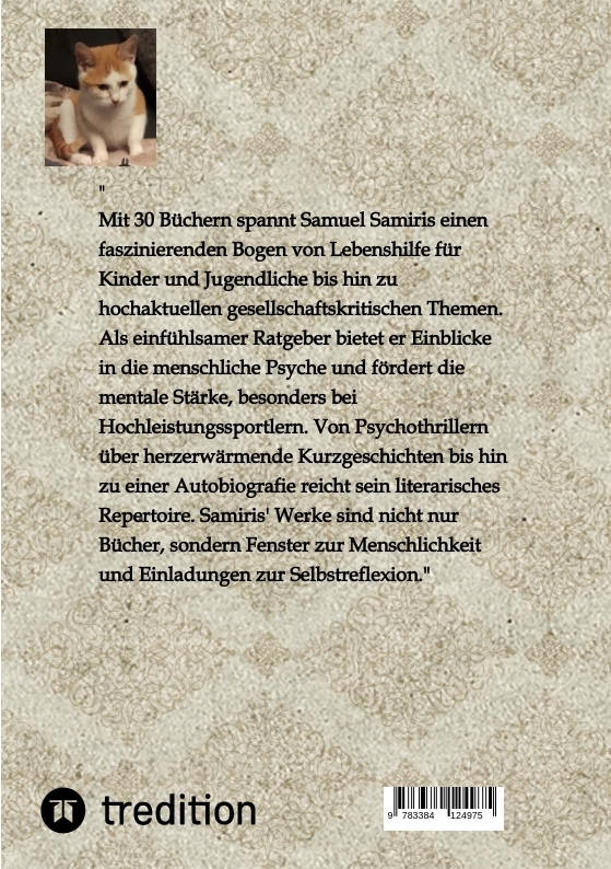 Samuel Samiris Schreibt vorsichtshalber unter einem Pseudonym. Sein Traumata verarbeitet er in all seinen Büchern, die alle nach und nach veröffentlicht werden. Andere sich darin spiegeln können und lernen mit einem ähnlichen Schicksal umzugehen. Seine Erlebnisse sind hart und haben ein Lebenslang an ihn gezerrt. Doch mit Hilfe der Psyche und der Selbstreflexion kann er heute über so vieles schreiben. Dies schreiben über das erlebte hilft Samuel Samiris alles aufzuarbeiten. So ist er heute ein sehr starker Mensch der vor nichts mehr Angst hat.
