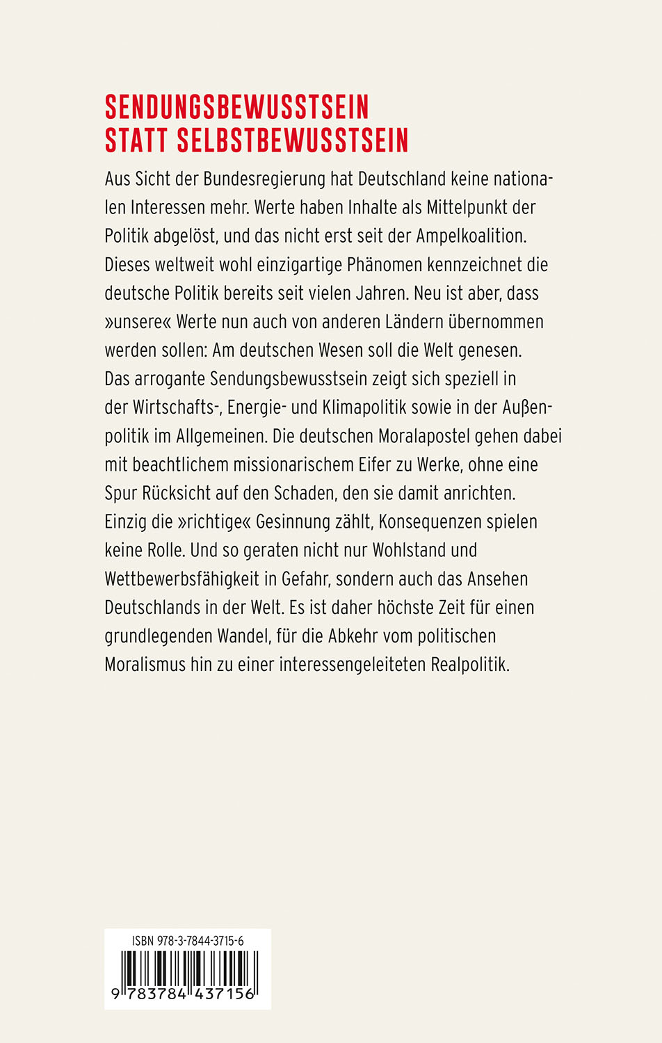 So werden die nationalen Interessen Deutschlands massiv beeinträchtigt. Nicht nur Wohlstand und Wettbewerbsfähigkeit, sondern auch der Einfluss Deutschlands auf der Bühne der Weltpolitik sind in Gefahr. Es ist deshalb höchste Zeit für einen grundlegenden politischen Wandel, für die Abkehr vom politischen Moralismus und die Hinwendung zu einer interessengeleiteten Realpolitik.