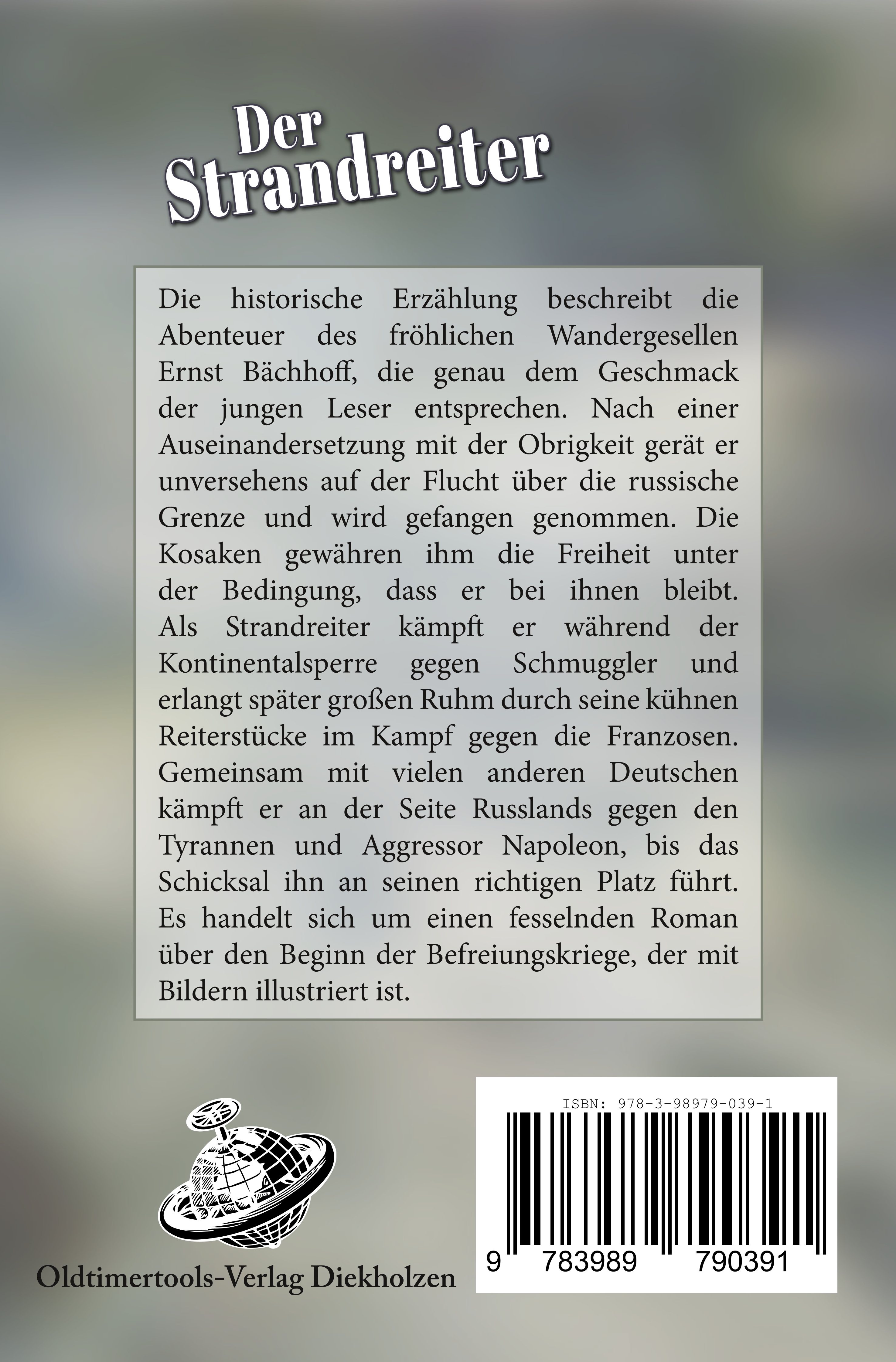 Die historische Erzählung beschreibt die Abenteuer des fröhlichen Wandergesellen Ernst Bächhoff, die genau dem Geschmack der jungen Leser entsprechen. Nach einer Auseinandersetzung mit der Obrigkeit gerät er unversehens auf der Flucht über die russische Grenze und wird gefangen genommen. Die Kosaken gewähren ihm die Freiheit unter der Bedingung, dass er bei ihnen bleibt. Als Strandreiter kämpft er während der Kontinentalsperre gegen Schmuggler und erlangt später großen Ruhm durch seine kühnen Reiterstücke im Kampf gegen die Franzosen. Gemeinsam mit vielen anderen Deutschen kämpft er an der Seite Russlands gegen den Tyrannen und Aggressor Napoleon, bis das Schicksal ihn an seinen richtigen Platz führt. Es handelt sich um einen fesselnden Roman über den Beginn der Befreiungskriege, der mit Bildern illustriert ist. Statt Fraktur jetzt in Normalschrift!