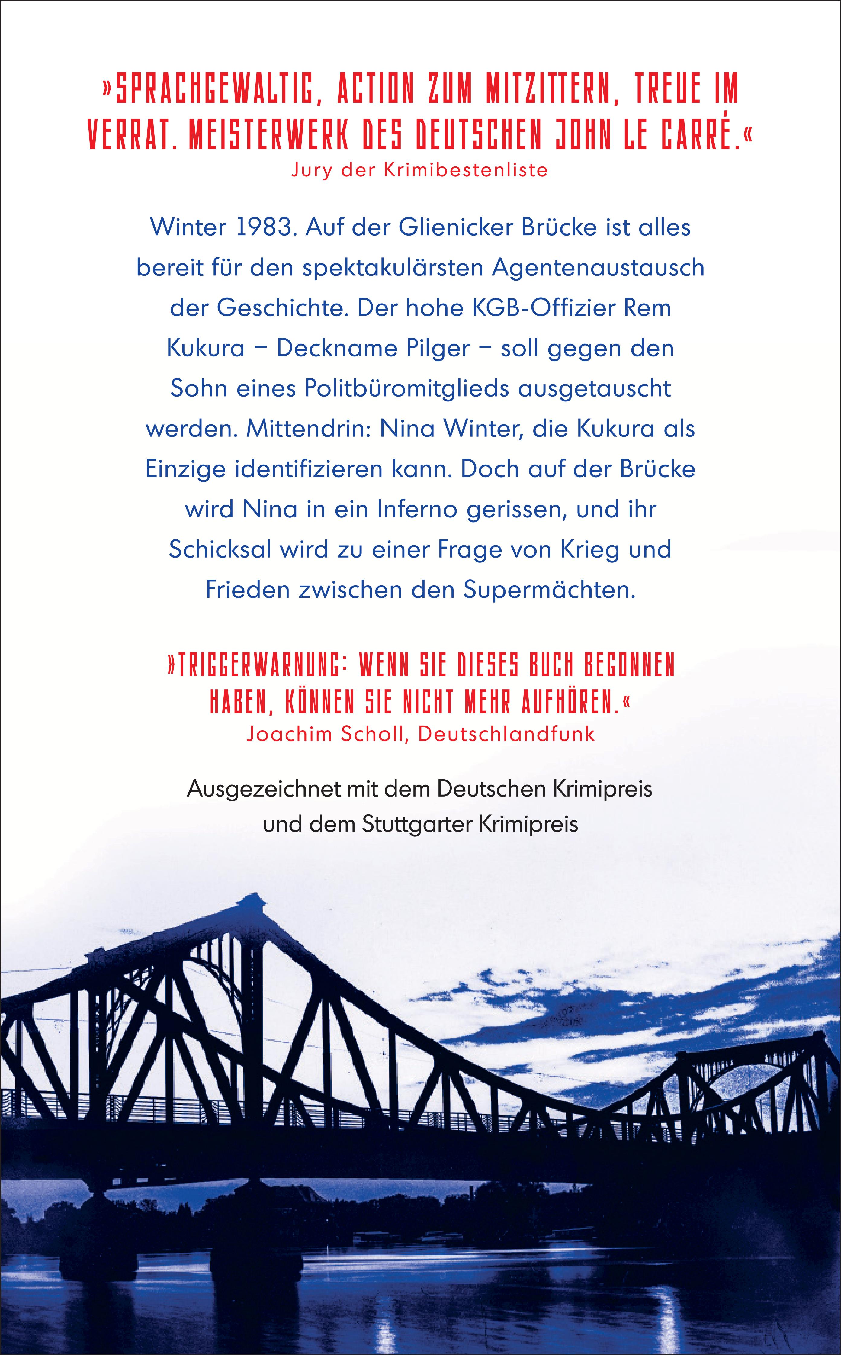 | Schlagworte | action • Agentenaustausch • aktuelles Buch • Berlin • Bestseller • Bestseller bücher • Bestsellerliste • BND • Booktok • buch bestseller • Bücher Neuererscheinung • Bücher Neuerscheinung • Bundesnachrichtendienst • Burgdorfer Krimipreis 2020 • Deutscher Krimipreis 2023 • deutsche Thriller • Deutsche Thriller-Autoren • Deutschland • Geheimdienst • Glienicker Brücke • Kalter Krieg • KGB • Krimi-Bestenliste • Krimi-Bestseller • Mitteleuropa • Moskau • Neuererscheinung • neuerscheinung 2024 • neues Buch • Nordostdeutschland • Operation Rubikon • Osteuropa • Page Turner • Russland • Spannung • Spiegel-Bestseller-Liste • Spionage • ST 5453 • ST5453 • Stuttgarter Krimipreis 2024 • suhrkamp taschenbuch 5453 • Thriller • Top-Agentin • Zentralrussland |