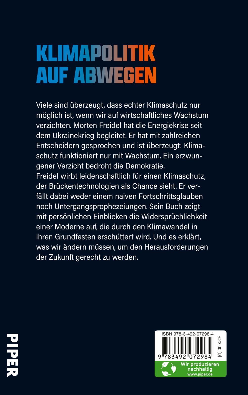 Viele sind überzeugt, dass echter Klimaschutz nur möglich ist, wenn wir auf wirtschaftliches Wachstum verzichten. Morten Freidel hat die Energiekrise seit dem Ukrainekrieg begleitet. Er hat mit zahlreichen Entscheidern gesprochen und ist überzeugt: Klimaschutz funktioniert nur mit Wachstum. Ein erzwungener Verzicht bedroht die Demokratie. Freidel wirbt leidenschaftlich für einen Klimaschutz, der Brückentechnologien als Chance sieht. Er verfällt dabei weder einem naiven Fortschrittsglauben noch Untergangsprophezeiungen. Sein Buch zeigt mit persönlichen Einblicken die Widersprüchlichkeit einer Moderne auf, die durch den Klimawandel in ihren Grundfesten erschüttert wird. Und es erklärt, was wir ändern müssen, um den Herausforderungen der Zukunft gerecht zu werden.