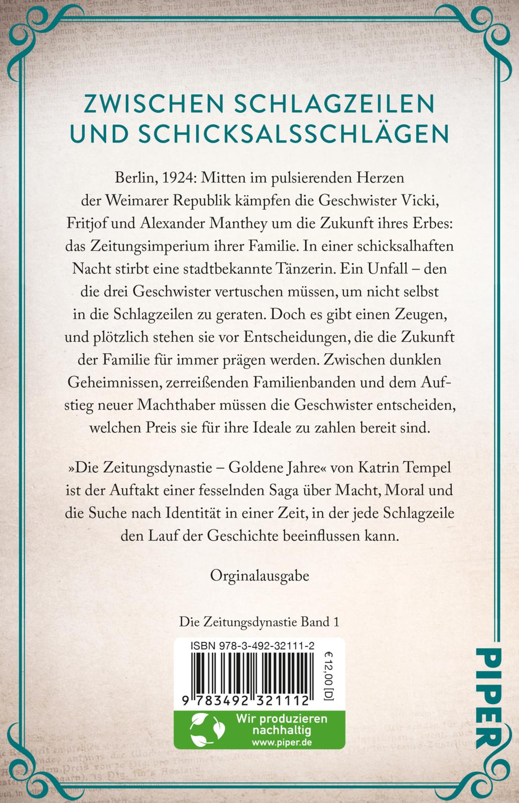 | Schlagworte | Berlin 1920er • Deutsche Geschichte • Erbe • Exil • Familiendynastie Roman • Familiensaga • Geschwister • Gesellschaftsroman • Historischer Roman • Katrin Tempel Bücher • Liebe und Verrat • Medien und Moral • Nationalsozialismus • politische Intrigen • Weimarer Republik |