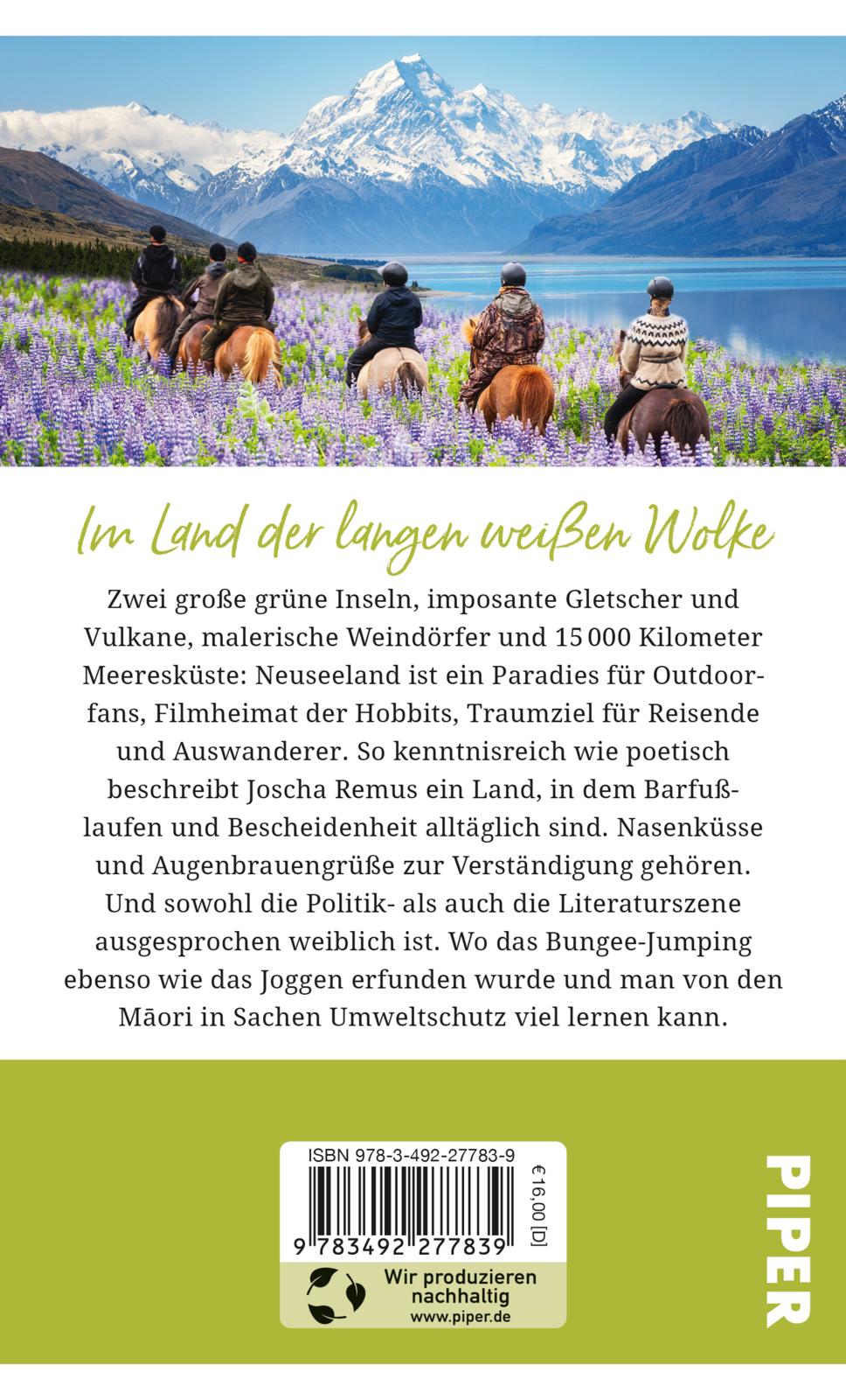 Joscha Remus blickt hinter die Kulissen eines Landes, dessen Licht und Landschaften nicht nur Fotografen und Maler verzaubern. Das als erstes das Frauenwahlrecht einführte, in dem Barfußlaufen und Bescheidenheit zum Alltag gehören und es nur selten Hausnummern und Türklingeln gibt. Und in dem man von den Maori in Sachen Umweltschutz noch etwas lernen kann.