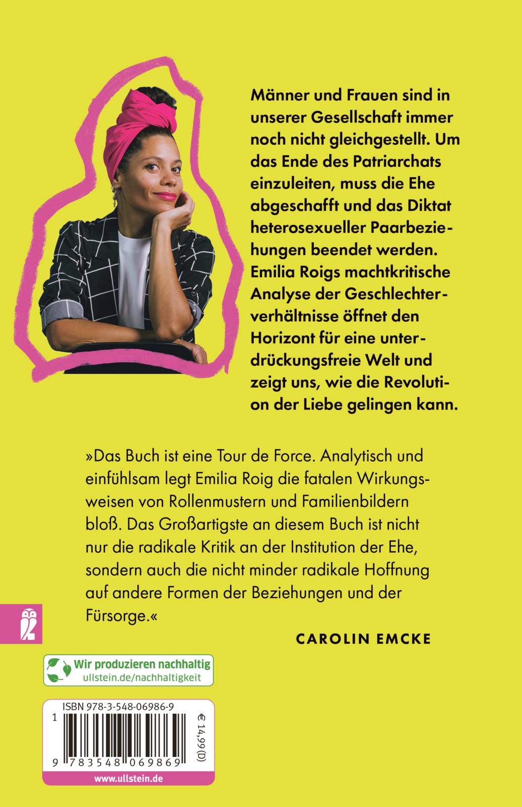 Die Ehe normiert Beziehungen und Familie, kontrolliert Sexualität, den Besitz und die Arbeitskraft. Sie ist eine wichtige Stütze des Kapitalismus und lässt uns in binären Geschlechterrollen verharren. In ihrem mutigen und provokanten Buch ruft Emilia Roig daher das Ende einer patriarchalischen Institution aus. Sie hinterfragt die Übermacht der Paare und untersucht, ob man Männer lieben und zugleich das Patriarchat stürzen kann. Letztlich wäre eine Abschaffung der Ehe nicht nur für Frauen befreiend, sondern für alle. Denn nur dann können wir Liebe in Freiheit und auf Augenhöhe miteinander neu denken und leben.