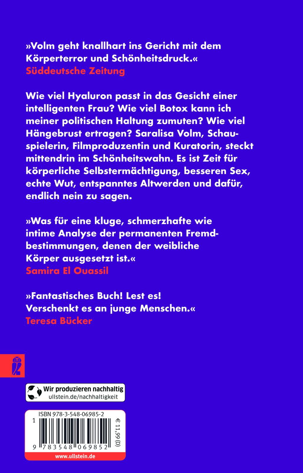»Saralisa Volm geht knallhart ins Gericht mit dem Körperterror und Schönheitsdruck auf Frauen, vor allem aber mit den Profitstrukturen, die dahinter stehen.« Süddeutsche Zeitung