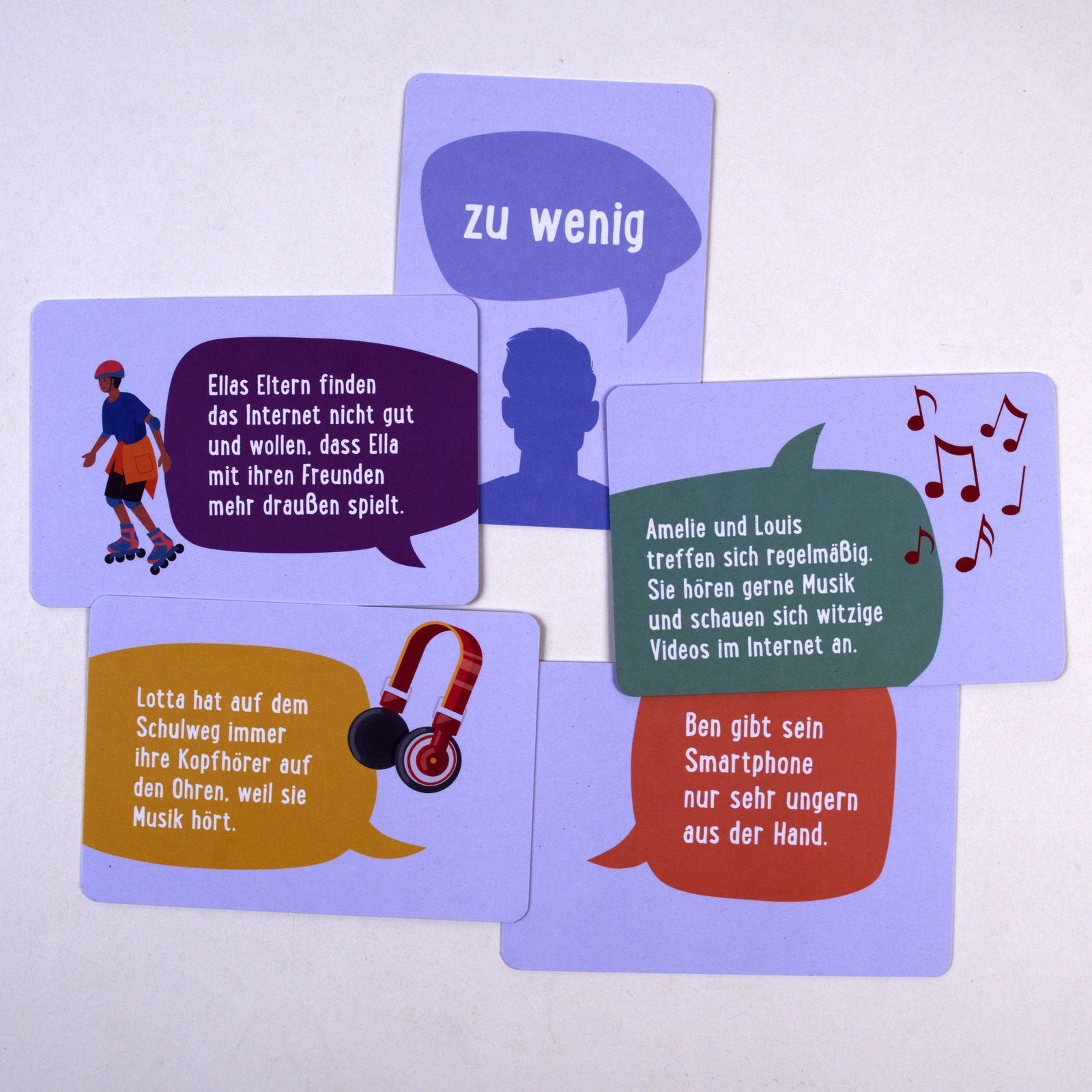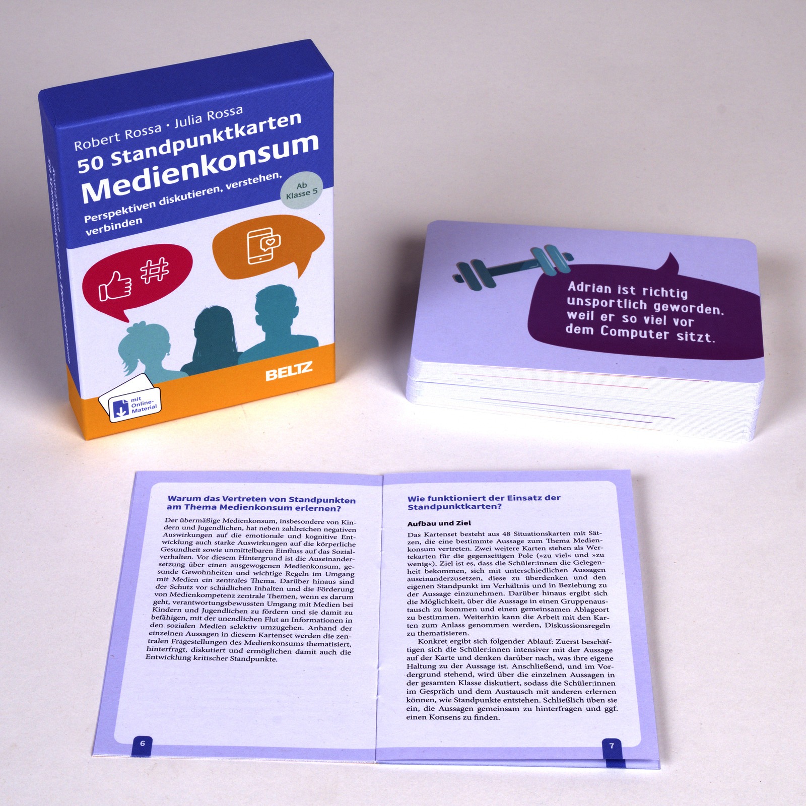Das Kartenset mit 50 Standpunktkarten Medienkonsum bietet eine spielerisch-praktische und damit attraktive Möglichkeit, Schüler:innen dabei zu unterstützen, eine Position zu beziehen und sich kontrovers mit medienbezogenen Themen auseinanderzusetzen. Sich eine eigene Meinung zu bilden, diese offen zu vertreten und konstruktiv darüber zu diskutieren, ist eine wichtige Bildungskompetenz.
