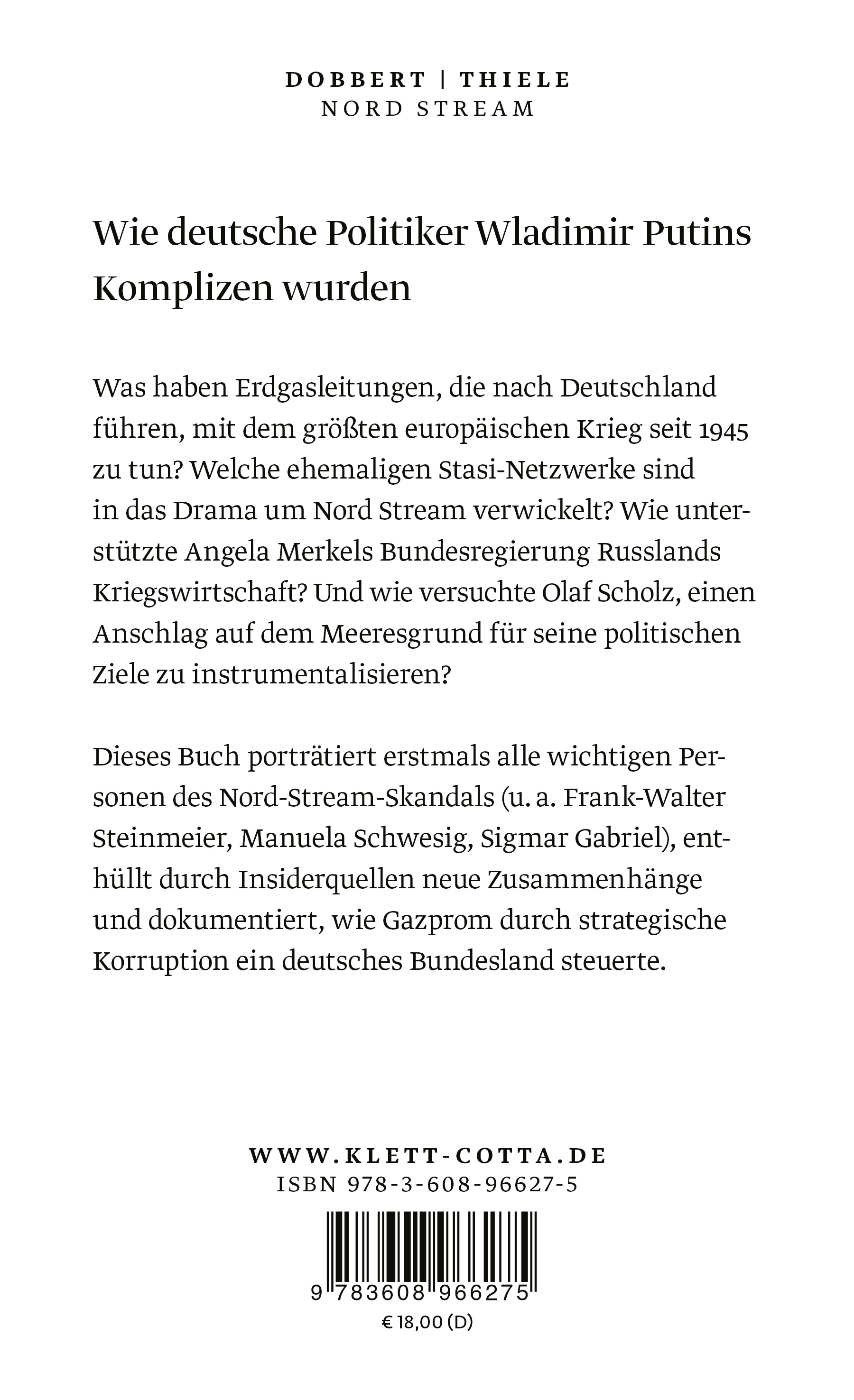 Jahrelang kämpft die Landesregierung in Mecklenburg-Vorpommern für den Bau der russischen Ostsee-Pipeline und stellt sich in den Dienst Putins. Ungestört baut Gazprom in Deutschland ein korruptives Netzwerk auf. Steffen Dobbert und Ulrich Thiele enthüllen besorgniserregende Zusammenhänge: Warum fließen 200 Millionen Euro aus Moskau an die deutsche Ostseeküste? Weshalb gibt eine deutsche Behörde geheime NATO-Daten an Gazprom weiter? Wieso ignoriert die Bundesregierung ukrainische Warnungen vor einer Kriegseskalation? Und sie zeigen, wie dutzende Volksvertreter sich für die Energieaußenpolitik Putins einsetzen, wie ein Ex-Spion der DDR einen folgenschweren Deal mit Gerhard Schröder und Manuela Schwesig verabredet und wie ein geheimes Schiff in der Ostsee an der Fertigstellung der Pipeline arbeitet. Sie entlarven die Strategien, mit denen Putin die EU spaltet, die Ukraine schwächt und Entscheidungsprozesse in Demokratien manipuliert.