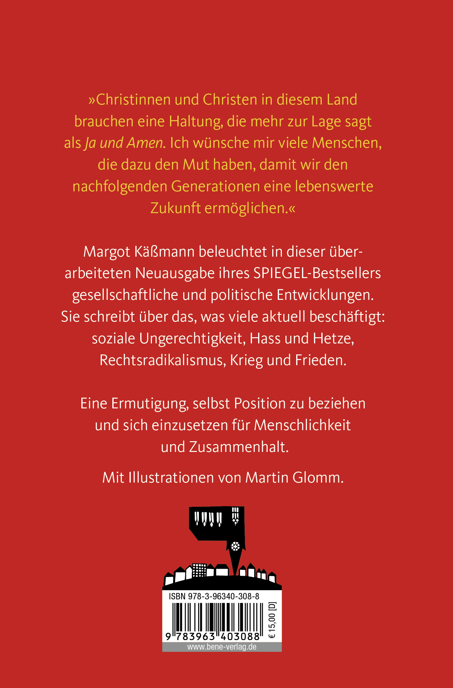 In dieser vollständig überarbeiteten Neuausgabe ihres Erfolgstitels beleuchtet Margot Käßmann Themen wie Krieg und Frieden, Rechtsradikalismus, Hass und Hetze. Die renommierte Theologin ermutigt zu Zivilcourage und aktivem Einsatz für Gerechtigkeit, Solidarität und Bewahrung der Schöpfung.