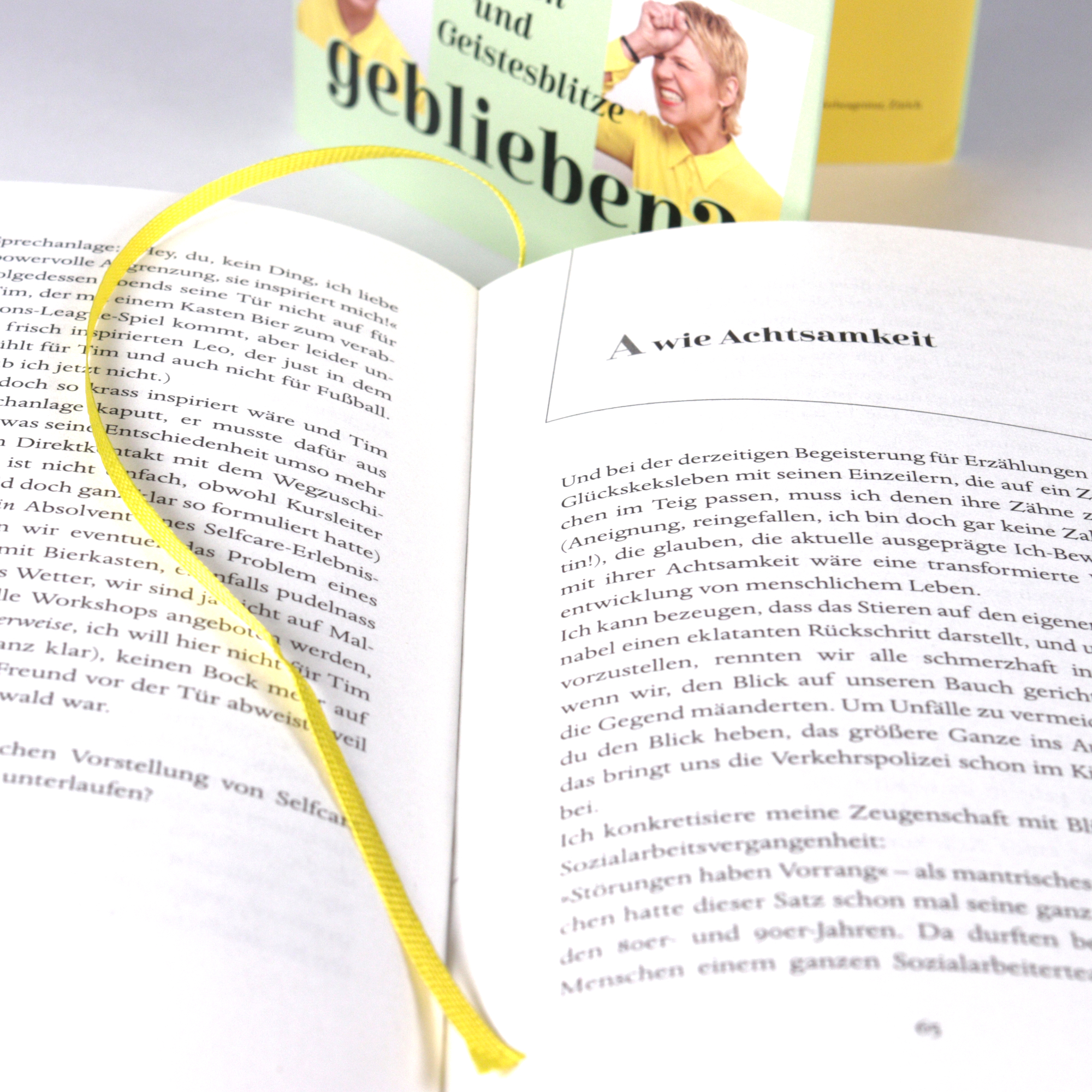 Scharfsinnig und mitunter sehr ernsthaft bohrt sie dort nach, wo es wehtut, und lässt uns befreit auflachen, wo nur Frohsinn weiterhilft. Immer bekommen wir es bei ihren Grübeleien über uns Menschen und unser Herummenscheln in dieser Welt mit ihr höchstpersönlich zu tun, mit ihrer Erfahrung als konfliktgestählte Therapeutin, leidenschaftliche Mutter und originelle Komikerin.