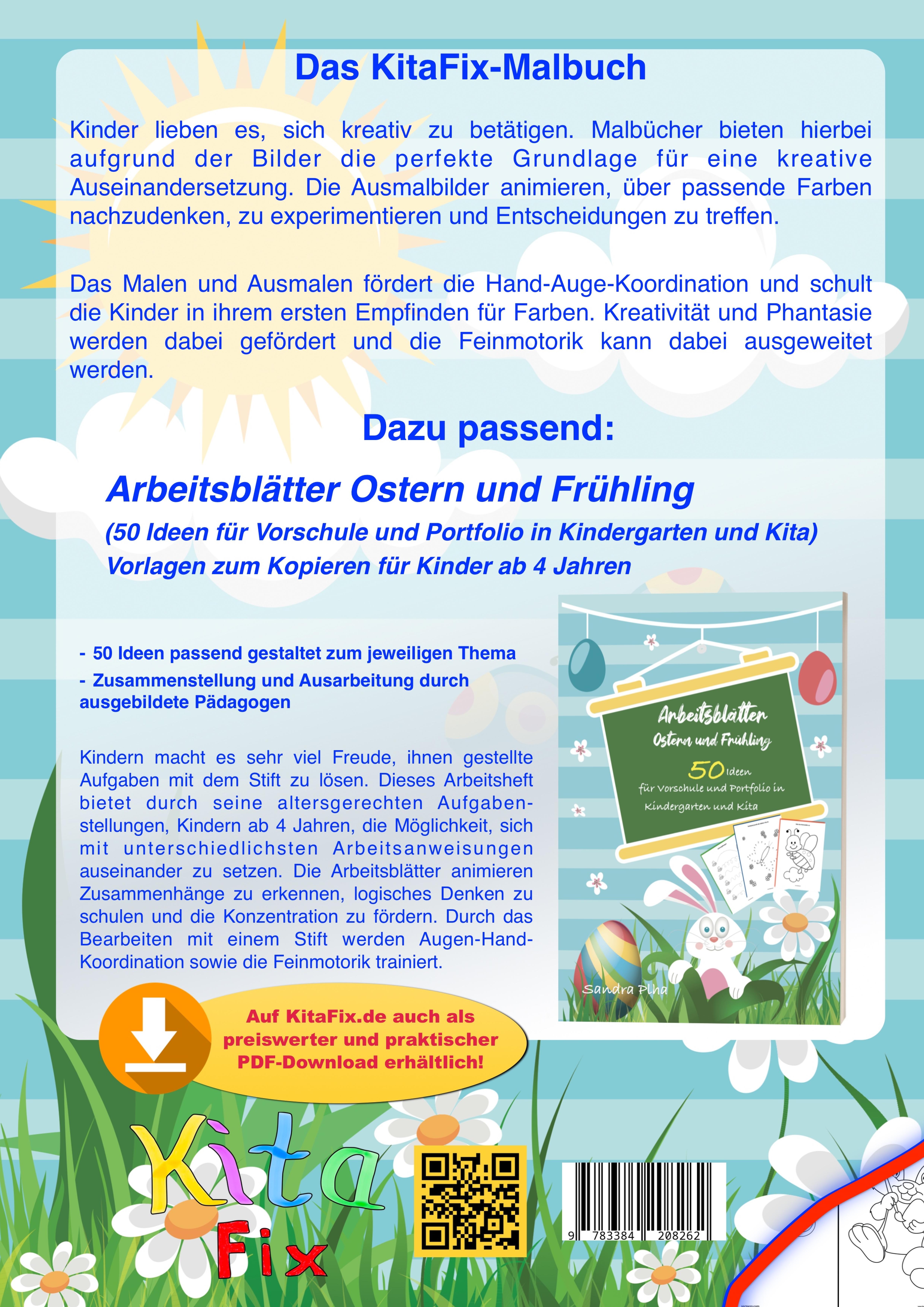 | Schlagworte | Ausmalen • Erzieher • Erzieherin • Feinmotorik • Frühling • Hase • Hort • Jahreszeiten • Kindergarten • Kinderpflegerin • Kita • Malbuch • Osterei • Osterhase • Ostern • Tageseltern • Tagesmutter • Tagesvater |