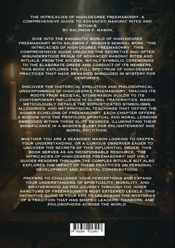 The Intricacies of High-Degree Freemasonry: A Comprehensive Guide to Advanced Masonic Rites and Ritualsby Salomon F. MasonDive into the enigmatic world of High-Degree Freemasonry with Salomon F. Mason's seminal work, "The Intricacies of High-Degree Freemasonry". This comprehensive guide unlocks the secretive and often misunderstood realm of advanced Masonic rites and rituals. From the solemn, richly symbolic ceremonies to the elaborate dress and conduct of its members, this book explores the full spectrum of high-degree practices that have remained shrouded in mystery for centuries.Discover the historical evolution and philosophical underpinnings of high-degree Freemasonry, tracing its roots from medieval stonemason guilds to its contemporary influence in global fraternities. Mason meticulously details the sophisticated symbolisms, allegories, and metaphysical teachings that define the higher echelons of Freemasonry. Each chapter offers a window into the profound spiritual and moral lessons embedded within these elite degrees, illuminating their significance in a Mason's quest for enlightenment and moral rectitude.Whether you are a seasoned Mason looking to deepen your understanding, or a curious observer eager to uncover the secrets of this influential order, this book serves as an indispensable resource. "The Intricacies of High-Degree Freemasonry" not only guides readers through the complex rituals but also explores the impact of these practices on personal development and societal contributions.Prepare to challenge your perceptions and expand your understanding of spirituality, morality, and brotherhood as you journey through the inner sanctums of Freemasonry's most esteemed levels. This definitive guide is your key to unlocking the mysteries of a tradition that has shaped leaders, thinkers, and philosophers across the world.