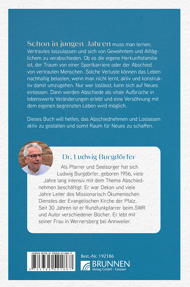 Das neue Buch des Autors und Pfarrers im Ruhestand, Dr. Ludwig Burgdörfer, macht Mut auch im täglichen Abschiednehmen Positives zu entdecken und neue Aufbrüche zu wagen.