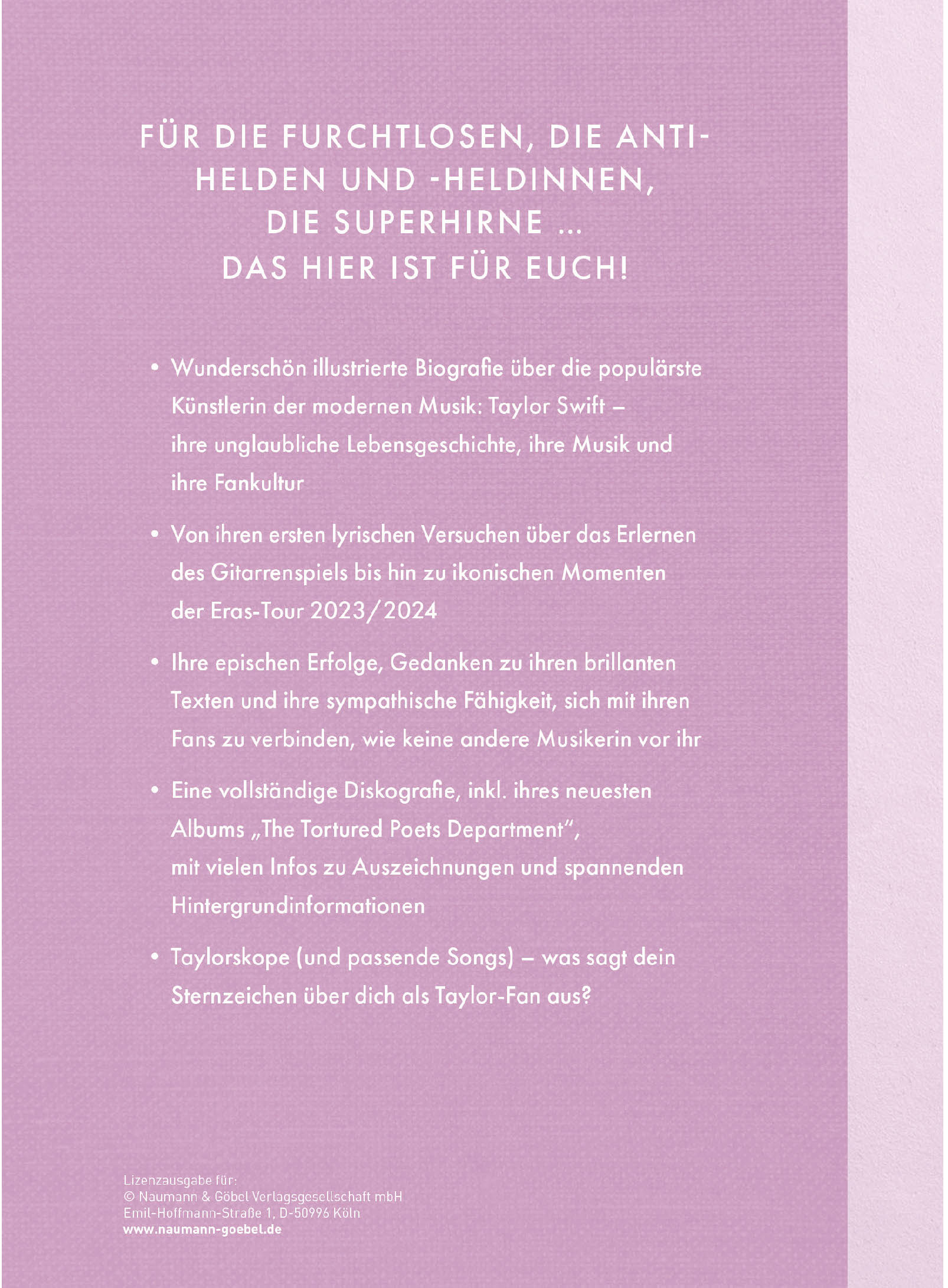 | Schlagworte | 1989 • Biografie • Biographie • Buch • Country • eRAs • evermore • Fearless • Folklore • Geschenkbuch • Geschenk für Swifties • Geschenk Taylor Swift • Lover • Midnights • Nashville • NGV • Pop • Popkultur • Popmusik • red • Reputation • Speak Now • Superstar • Swiftie • Taylormania • Taylors Version • Taylor Swift • Taylor Swift Buch • The Life of a Showgirl • The tortured poets department |