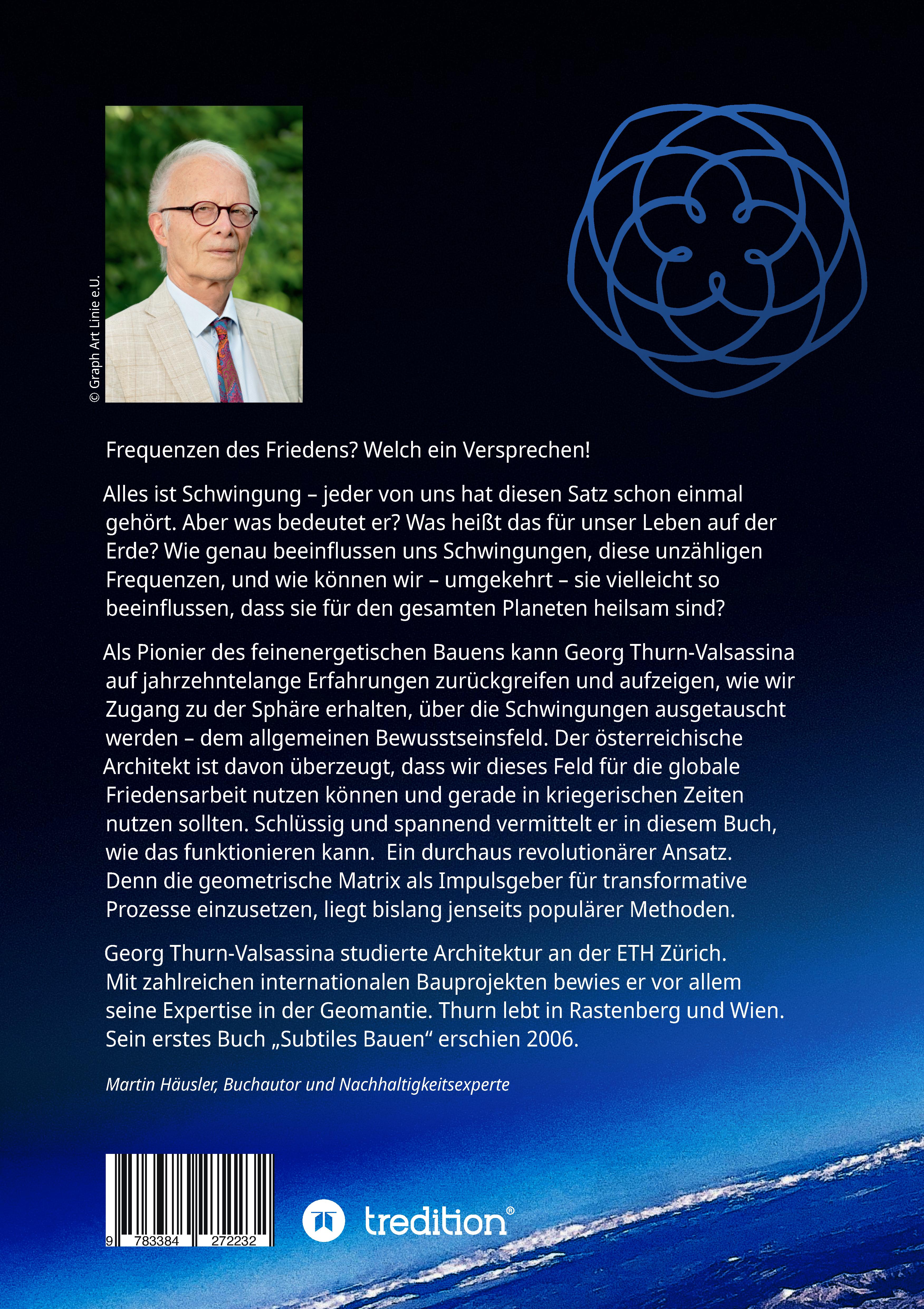 Georg Thurn Valsassina entstammt einer Familie mit internationaler Eingebundenheit und langer Geschichte. Er wurde in Schlesien am 1.1.1942 geboren und sein Heimatort ist die Burg Rastenberg. Er studierte Forstwirtschaft in Wien und Architektur in Zürich. 1982 gründete er sein eigenes Architekturbüro in Rastenberg (NÖ) nach 3 jähriger praktischer Tätigkeit in München. Er ist Patentinhaber für ein Bausystem. Nach dem Ausflug in die reine Technik widmete er sich einige Jahre der regionalen Baukultur in Niederösterreich und entdeckte dann seine Passion für das geomantische und feinenergetische Bauen. Sein Büro entwickelte sich zu einer international anerkannten "Lichtschmiede". Projekte in USA, England, Deutschland, Kasachstan und Indien wurden bearbeitet. Parallel zur Architektenarbeit wuchs sein Interesse für die "unsichtbaren Welten" und führte ihn zur Arbeit als Seminarleiter für Bewusstseins- bildung, Vortragstätigkeit, und zu seinem ersten Buch 2006 "Subtiles Bauen". 1987 entstand das Seminarhaus "Die Lichtung", der erste geomantisch konzipierte Bau Europas. Mit den Jahren vertiefte er sein Wissen über physikalisch nicht messbare Wirkfaktoren und er verfeinerte seine Wahrnehmung und seinen Blick hinter die Fassade des rein Materiellen. In dem Buch "Frequenzen des Friedens" hat er seine Erkenntnisse der letzen 40 Jahre verwertet und eine Vision für eine friedlichere Welt entwickelt. Es handelt sich um einen visionären Ansatz einer mögliche Zukunft , in der wir Menschen mit Bewusstheit höhere Dimensionen in gesellschaftliche Prozesse einbeziehen werden. Zur Familie: 1967 Heirat mit der Französin Christane Singer, aus der Ehe entsprossen 2 Söhne, Dorian und Raphael. Christane wurde in Frankreich zu einer gefeierten Schriftstellerin mit Belobigung durch die Academie Francaise. Christiane und Georg pflegten einen intensiven intellektuellen Austausch. 2007 verstarb Christiane und 2012 fand Georg eine neue Partnerin, Ilse Rössl, die seine Passion für das Feinstoffliche teilt.