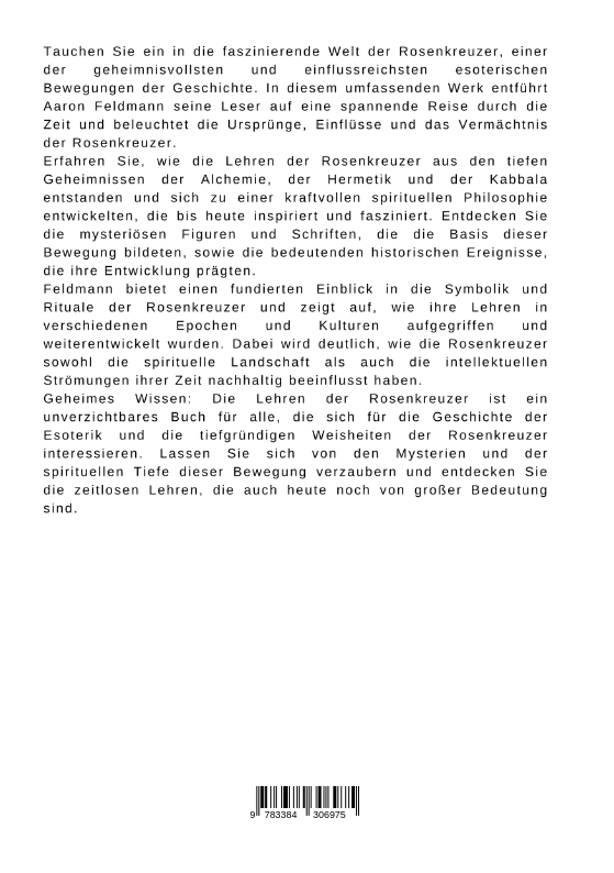 Tauchen Sie ein in die faszinierende Welt der Rosenkreuzer, einer der geheimnisvollsten und einflussreichsten esoterischen Bewegungen der Geschichte. In diesem umfassenden Werk entführt Aaron Feldmann seine Leser auf eine spannende Reise durch die Zeit und beleuchtet die Ursprünge, Einflüsse und das Vermächtnis der Rosenkreuzer.Erfahren Sie, wie die Lehren der Rosenkreuzer aus den tiefen Geheimnissen der Alchemie, der Hermetik und der Kabbala entstanden und sich zu einer kraftvollen spirituellen Philosophie entwickelten, die bis heute inspiriert und fasziniert. Entdecken Sie die mysteriösen Figuren und Schriften, die die Basis dieser Bewegung bildeten, sowie die bedeutenden historischen Ereignisse, die ihre Entwicklung prägten.Feldmann bietet einen fundierten Einblick in die Symbolik und Rituale der Rosenkreuzer und zeigt auf, wie ihre Lehren in verschiedenen Epochen und Kulturen aufgegriffen und weiterentwickelt wurden. Dabei wird deutlich, wie die Rosenkreuzer sowohl die spirituelle Landschaft als auch die intellektuellen Strömungen ihrer Zeit nachhaltig beeinflusst haben.Geheimes Wissen: Die Lehren der Rosenkreuzer ist ein unverzichtbares Buch für alle, die sich für die Geschichte der Esoterik und die tiefgründigen Weisheiten der Rosenkreuzer interessieren. Lassen Sie sich von den Mysterien und der spirituellen Tiefe dieser Bewegung verzaubern und entdecken Sie die zeitlosen Lehren, die auch heute noch von großer Bedeutung sind.