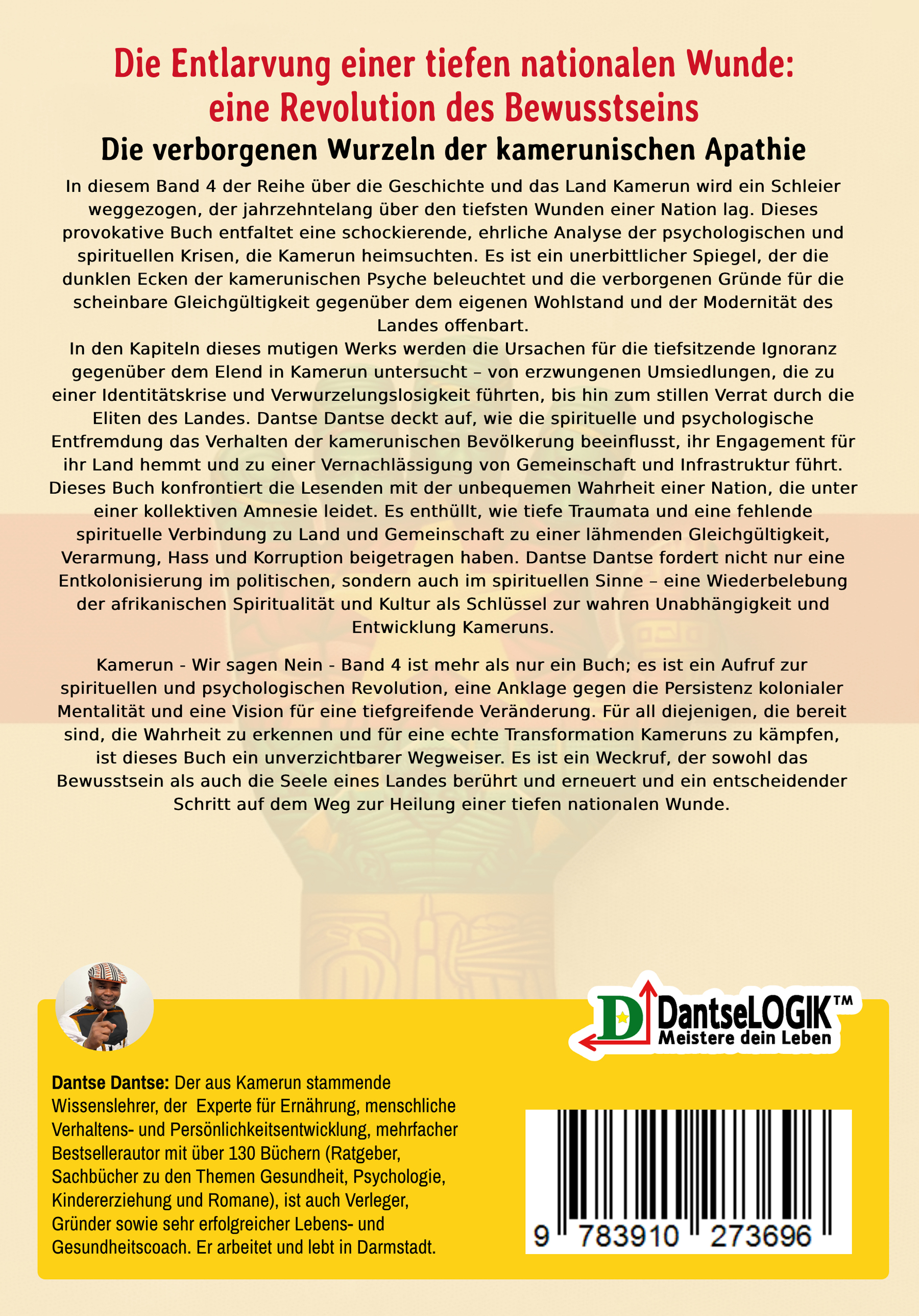Dieser Band 4 ist ein schonungsloser Weckruf. Es stellt die unbequemen Wahrheiten dar, was notwendig ist, um das unterdrückte Trauma und die verleugnete spirituelle Krise zu erkennen und anzugehen. Dieses Buch ist ein dringender Appell für eine tiefgreifende Veränderung, die sowohl das Bewusstsein als auch die Seele des Landes berührt und erneuert. Es ist ein Wegweiser für diejenigen, die bereit sind, die Wahrheit anzuerkennen und für eine echte Transformation Kameruns zu kämpfen.