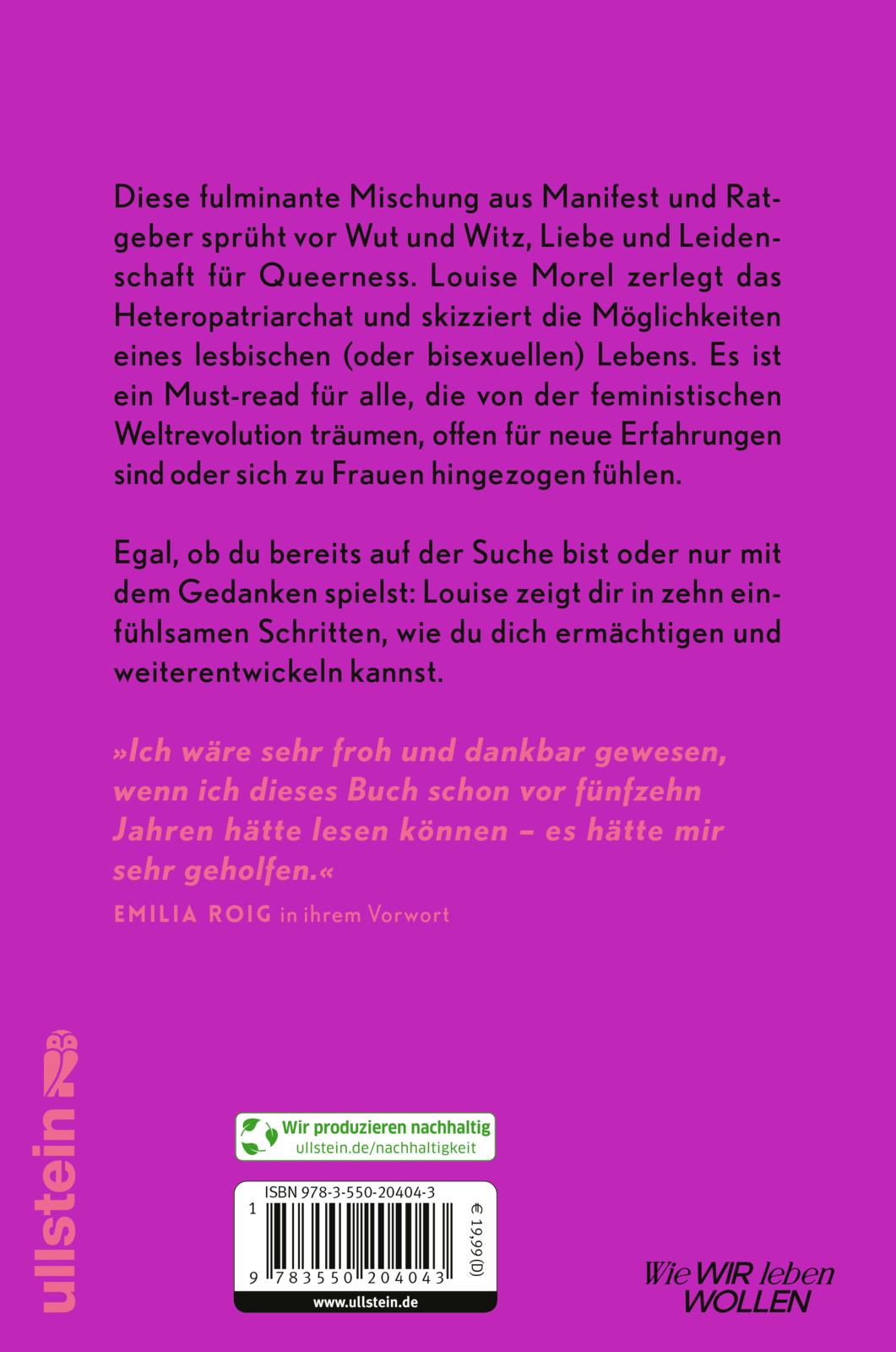 Ihre fulminante Mischung aus Manifest und Ratgeber sprüht vor Wut und Witz, Liebe und Leidenschaft für Queerness. Louise zerlegt das Heteropatriarchat und skizziert die Möglichkeiten eines lesbischen (oder bisexuellen) Lebens. Es ist ein Must-read für alle, die von der feministischen Weltrevolution träumen, offen für neue Erfahrungen sind oder sich zu Frauen hingezogen fühlen. Egal, ob du bereits auf der Suche bist oder nur mit dem Gedanken spielst: Louise zeigt dir in zehn einfühlsamen Schritten, wie du dich ermächtigen und weiterentwickeln kannst.