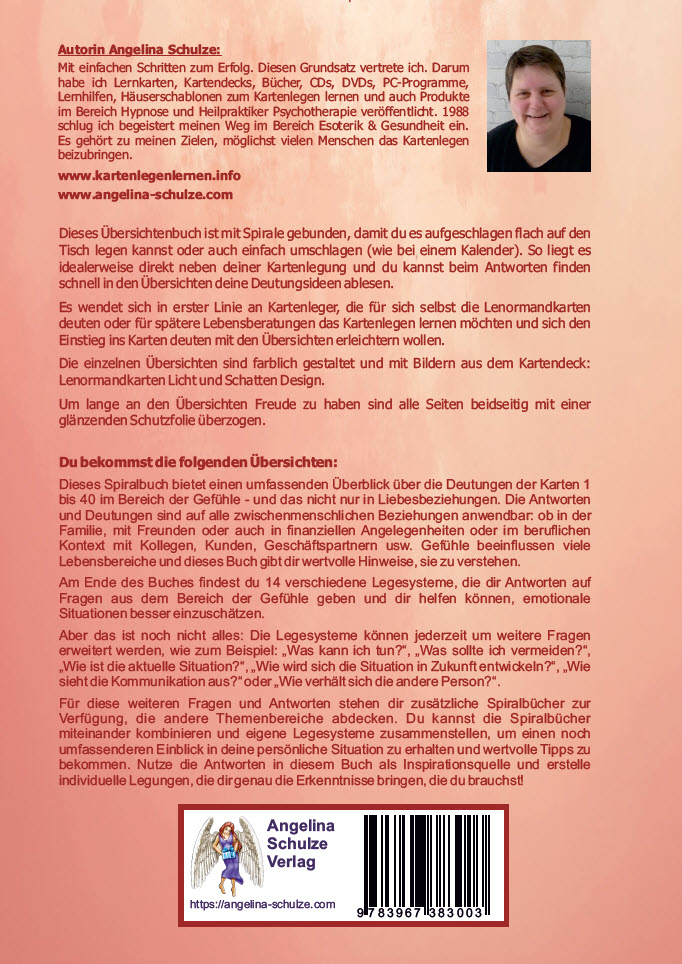 | Schlagworte | Deutung Lenormandkarten • Deutungsübersichten • Deutungsübersicht Lenormandkarten • Gefühle deuten • Gefühle Deutungen • Kartenlegen • Kartenlegen ausführlich • Kartenlegen leicht • Kartenlegen lernen • Kartenlegen schnell • Kleine Legung • Kleine Legungen • Lenormand • Lenormand Angelina Schulze • Lenormand Bedeutung • Lenormand Buch • Lenormand deuten • Lenormand Deutung • Lenormand Deutung leicht gemacht • Lenormand Deutungshilfe • lenormand fragen stellen • Lenormand Gefühle • Lenormandkarten • Lenormand Karten • Lenormandkarten Deutung • Lenormand lernen • lenormand orakel • Lenormand Power • Lenormand Spiralbuch • Liebe deuten • Liebe Deutungen • Liebe Lenormand • Mind-Maps Lenormand • Positionsdeutung • Schnellübersicht • Spiralbuch Lenormand • vertiefende Deutung |