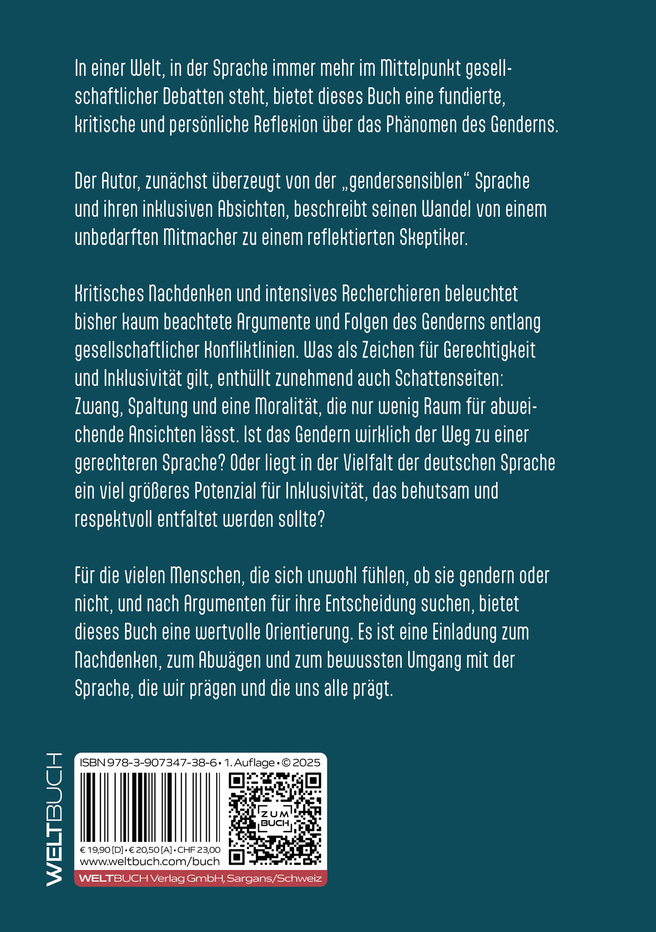 Für die vielen Menschen, die sich unwohl fühlen, ob sie gendern oder nicht, und nach Argumenten für ihre Entscheidung suchen, bietet dieses Buch eine wertvolle Orientierung. Es ist eine Einladung zum Nachdenken, zum Abwägen und zum bewussten Umgang mit der Sprache, die wir prägen und die uns alle prägt. Inhalt