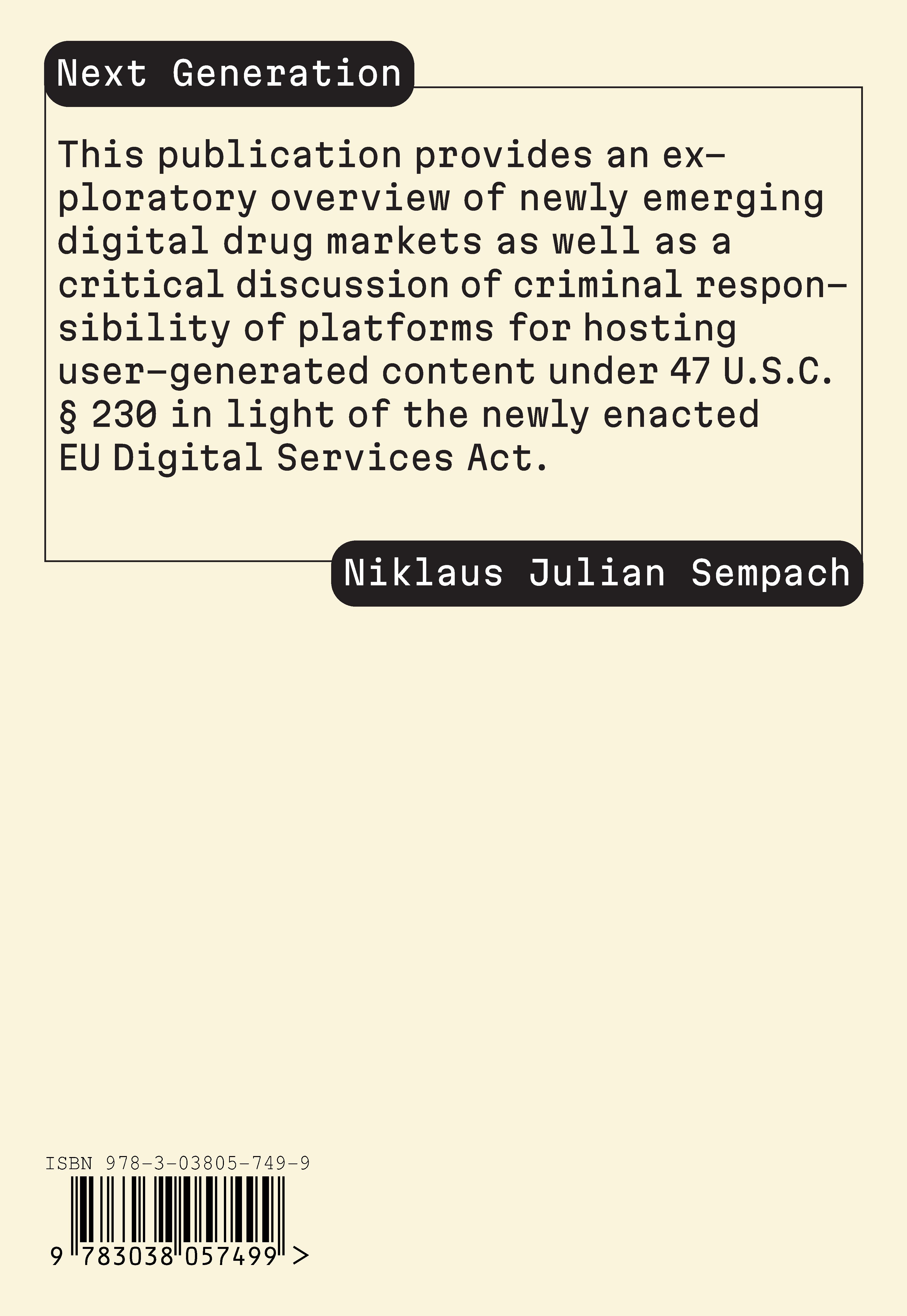 This publication provides an exploratory overview of newly emerging digital drug markets as well as a critical discussion of criminal responsibility of platforms for hosting user-generated content under 47 U.S.C.