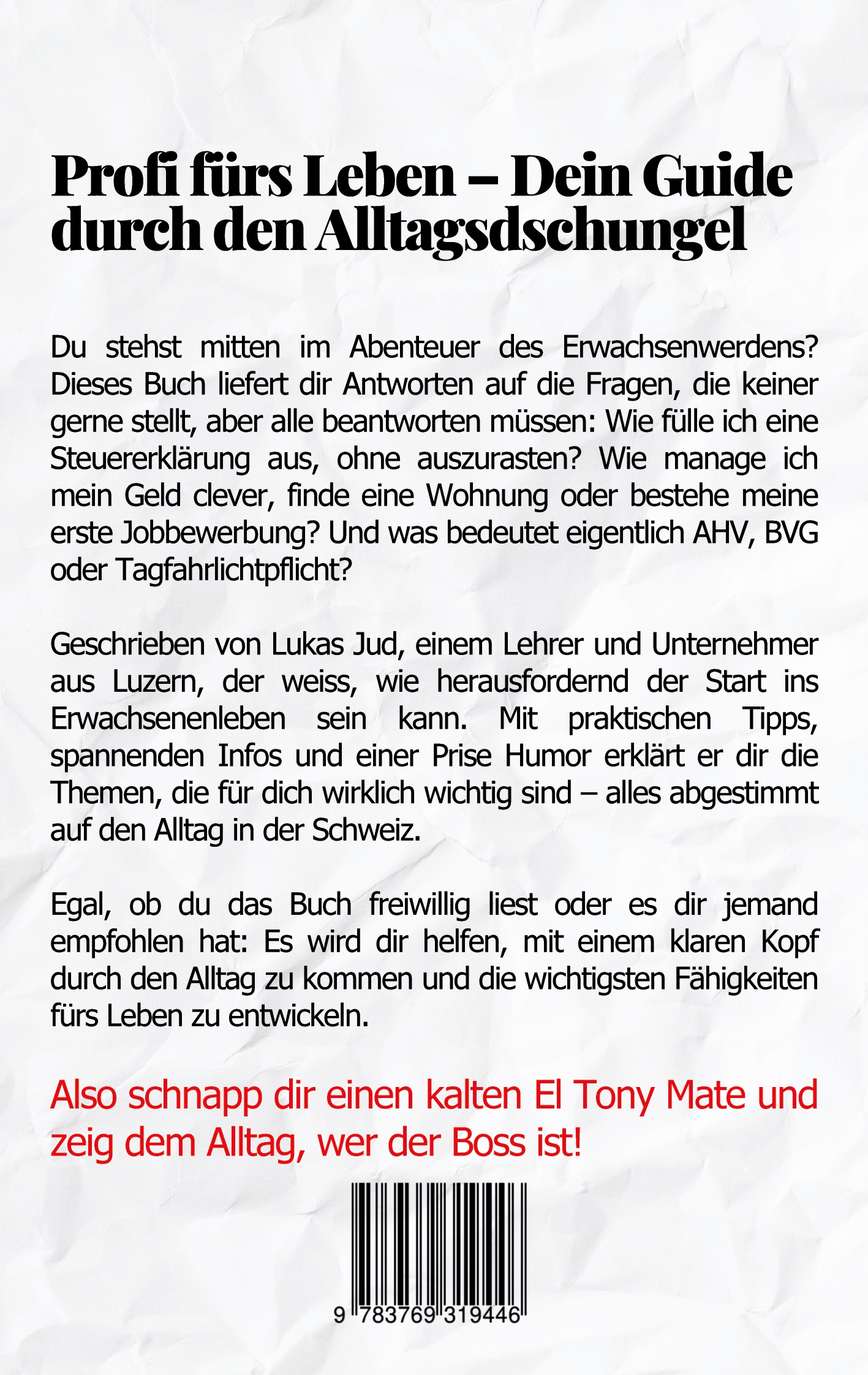 Erwachsenwerden in der Schweiz ist spannend, manchmal chaotisch und voller Fragen. Dieses Buch ist dein Ratgeber für alle Themen, die in der Schule oft zu kurz kommen: Steuern, Budgetplanung, Versicherungen, Demokratie, Wohnen und Reisen. Hier bekommst du keine langweiligen Vorträge, sondern praktische Tipps und leicht verständliche Erklärungen. Lukas Jud zeigt dir, wie du Herausforderungen meisterst und mit cleveren Strategien das Beste aus deinem Alltag machst.