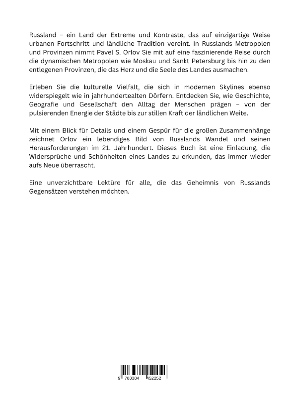 Russland – ein Land der Extreme und Kontraste, das auf einzigartige Weise urbanen Fortschritt und ländliche Tradition vereint. In Russlands Metropolen und Provinzen nimmt Pavel S. Orlov Sie mit auf eine faszinierende Reise durch die dynamischen Metropolen wie Moskau und Sankt Petersburg bis hin zu den entlegenen Provinzen, die das Herz und die Seele des Landes ausmachen.