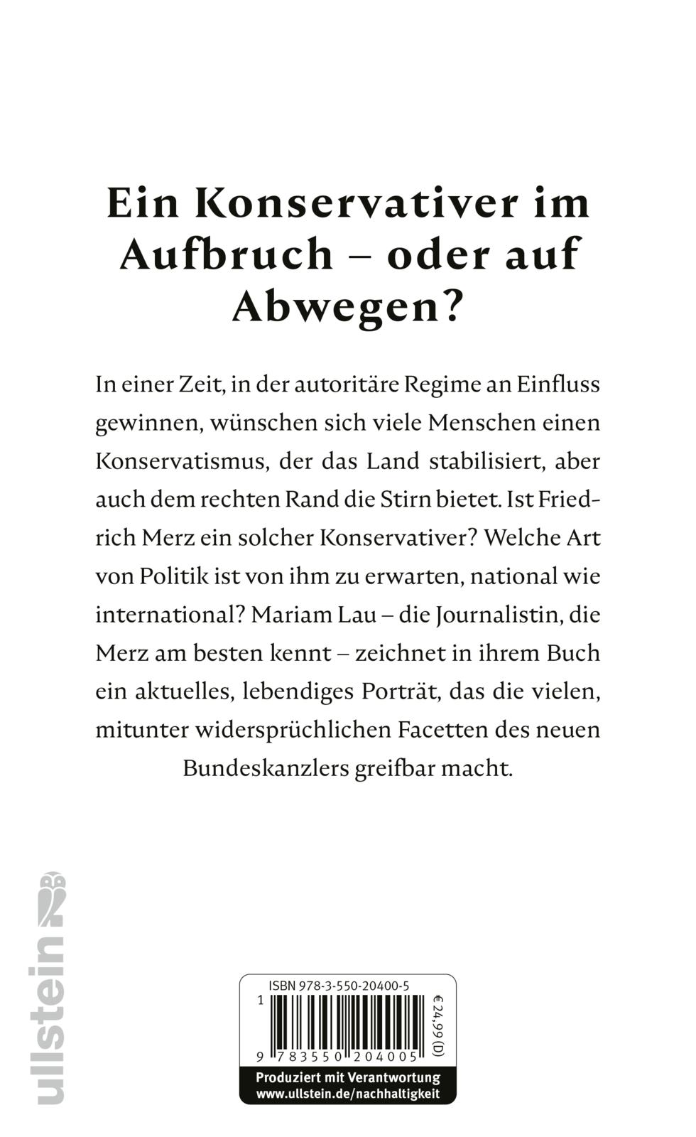Die Republik ist nervös und zerstritten - und sie sieht sich stärker werdenden inneren und äußeren Feinden gegenüber. In einer Zeit, in der autoritäre Regime weltweit an Einfluss gewinnen, sehnen sich viele Menschen nach einem Konservatismus, der sowohl das Land stabilisiert als auch den Autoritären die Stirn bietet. Aber ist der neue Kanzler ein solcher Konservativer? Oder ist auch Friedrich Merz auf dem Weg dahin, alte Gewisseheiten der parlamentarischen Zusammenarbeit zu zerschlagen, um schnelle Antworten auf die geopolitischen, wirtschaftlichen und gesellschaftlichen Herausforderungen unserer Zeit zu liefern? Kann er große Zukunftsthemen vorantreiben, die Europa stärken? Wie geht Merz mit dem Reizthema Migration um - mäßigend oder eskalierend? Und was hat all das mit seinem persönlichen Werdegang zu tun? Niemand kann diese Fragen besser beantworten als Mariam Lau, die Friedrich Merz seit Jahren als Berichterstatterin bei der ZEIT begleitet.