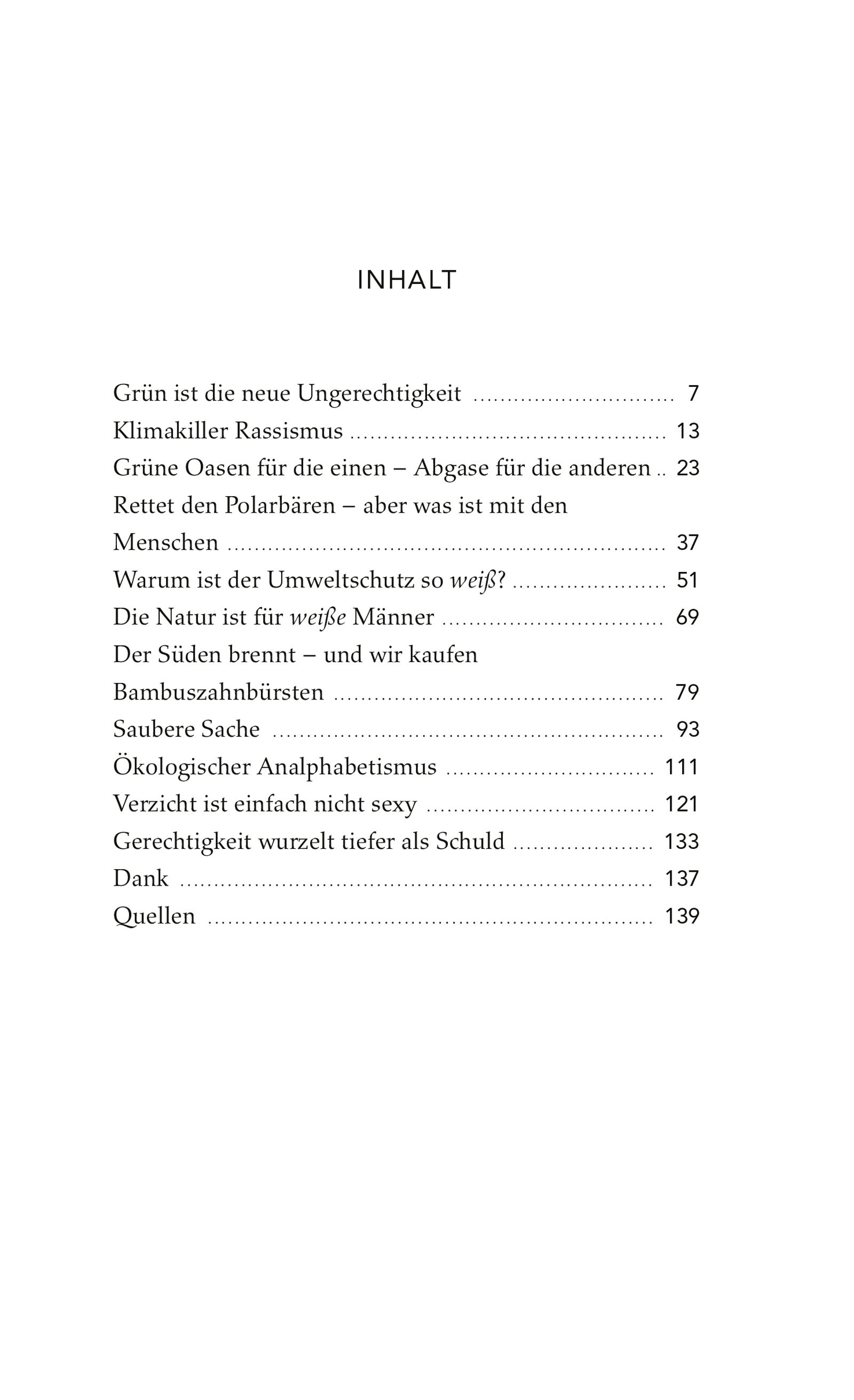 Eindrücklich zeigt Ciani-Sophia Hoeder, warum Bambuszahnbürsten die Welt nicht retten und was hinter »grünen Nazis« steckt. Ein Buch über die oft unsichtbaren Zusammenhänge zwischen Ökologie und Rassismus – aufrüttelnd, persönlich und hochaktuell.