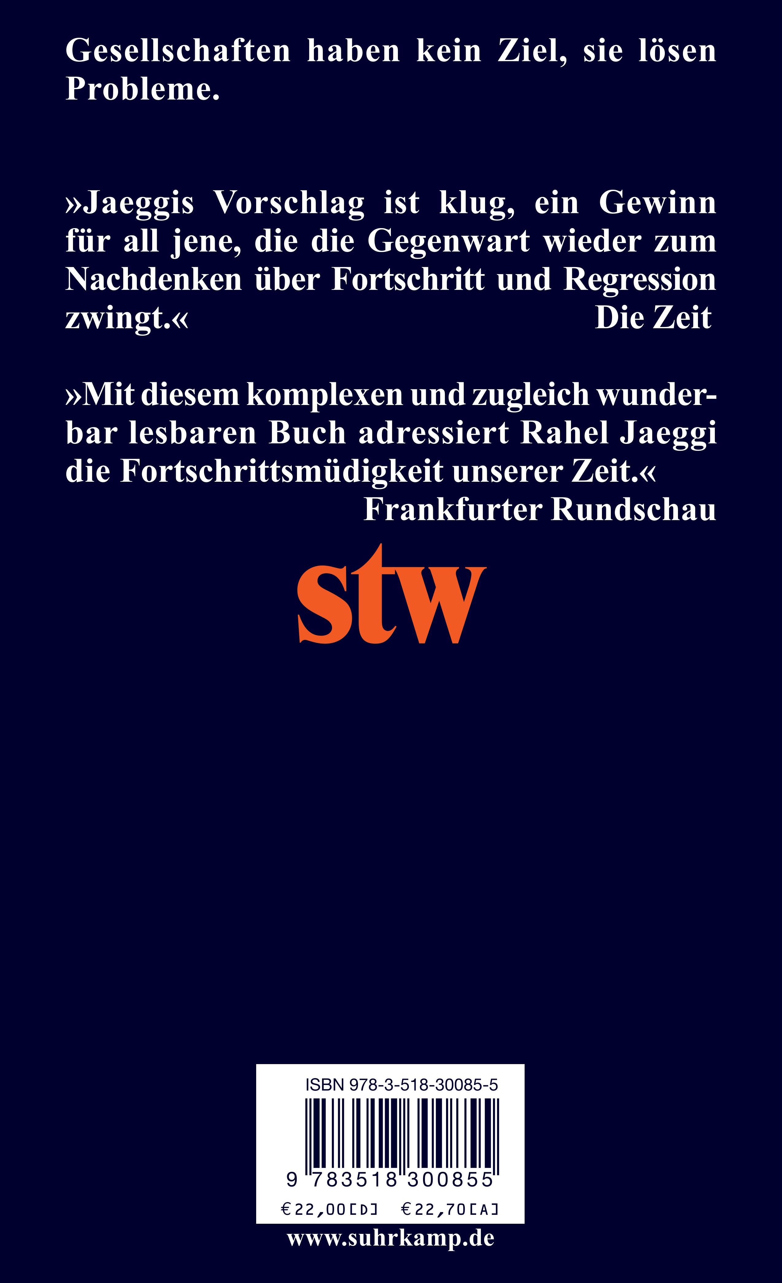 »Mit diesem komplexen und zugleich wunderbar lesbaren Buch adressiert Rahel Jaeggi die Fortschrittsmüdigkeit unserer Zeit.«