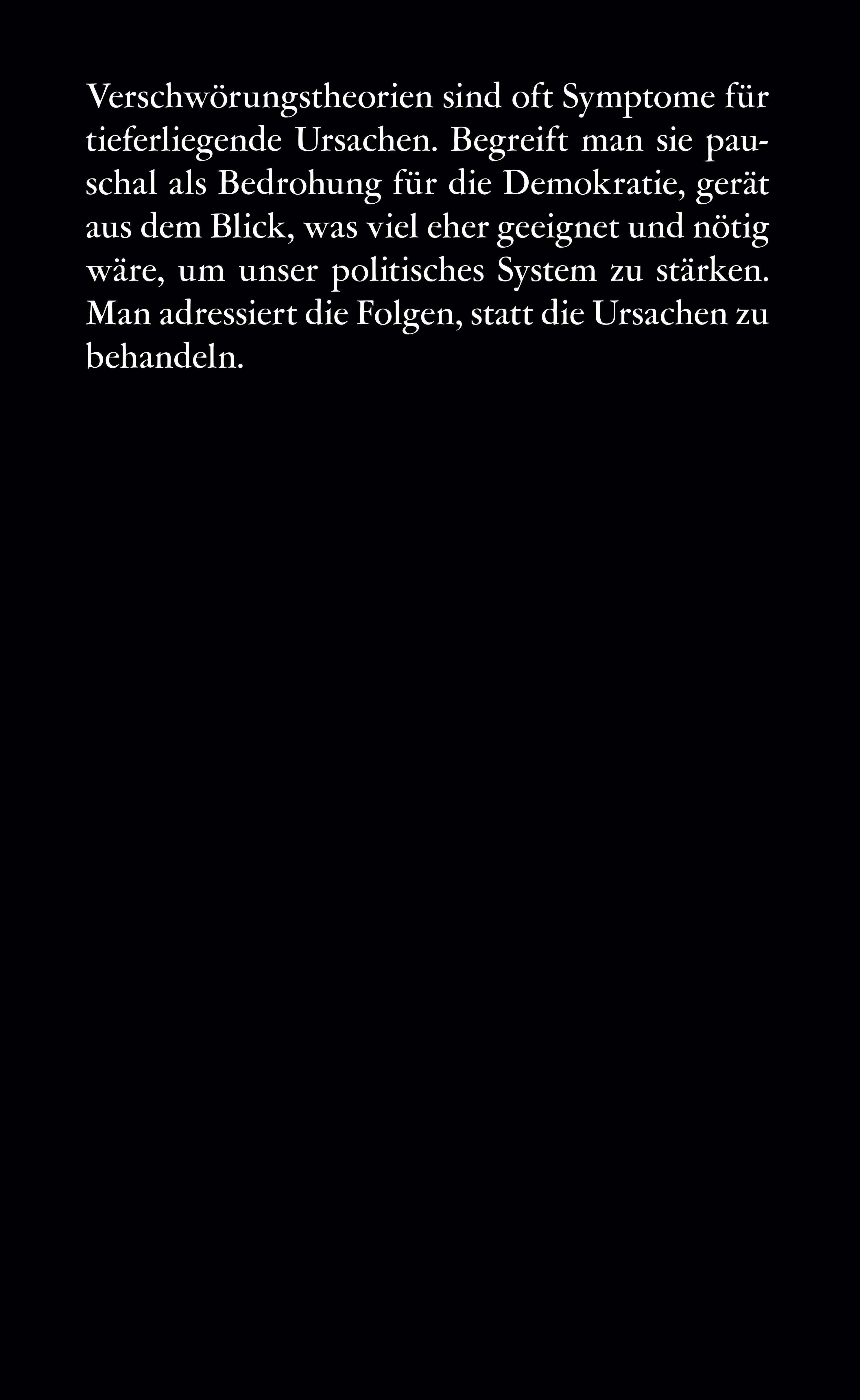 Michael Butter, Bestsellerautor und einer der renommiertesten Experten für das Thema, präsentiert die Ergebnisse seiner jahrelangen Forschung. So groß die Gefahr auch ist: Eine freie und demokratische Gesellschaft darf sich nicht von der Angst vor Verschwörungstheorien beherrschen lassen und in Alarmismus verfallen. Wie Populismus sind auch sie eine Reaktion auf eine empfundene oder befürchtete Exklusion. Wer sie bekämpfen will, sollte andere nicht einfach als Schwurbler oder Leichtgläubige hinstellen. Vielmehr gilt es, die gesellschaftlichen Ursachen zu bekämpfen. Inklusion und Teilhabe, so Butter, stellen den wirksamsten Schutz gegen Hetze und Unwahrheiten dar.