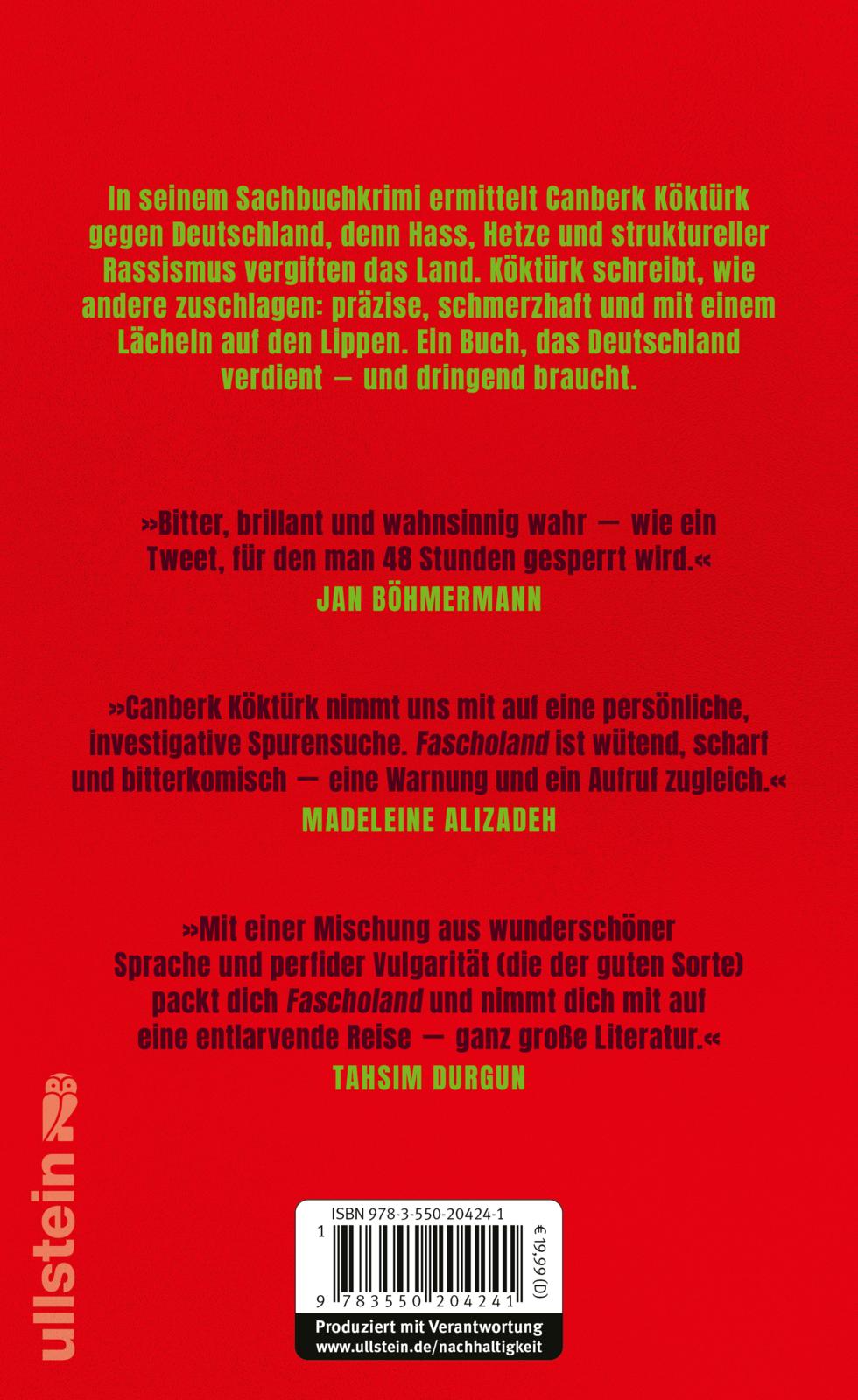 »Canberk Köktürk nimmt uns mit auf eine persönliche, investigative Spurensuche durch ein Land, das seine Probleme leugnet. Fascholand ist wütend, scharf und bitterkomisch – eine Warnung und ein Aufruf zugleich.« MADELEINE ALIZADEH aka DariaDaria