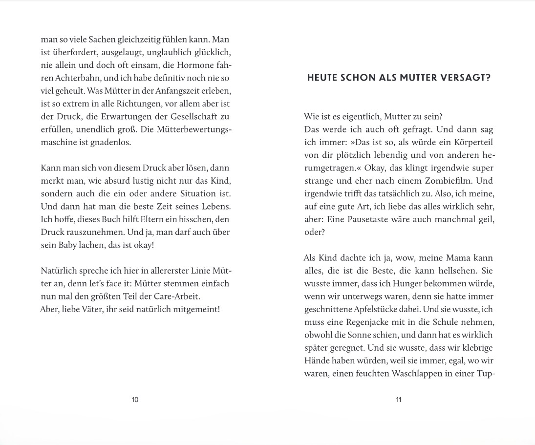 »Ein lesenswertes Buch für frischgebackene Mütter, vor allem für die, die schon festgestellt haben, dass das mit dem Mutter-Dasein nicht nur der Garten Eden ist.« – Rheinische Post 20251108