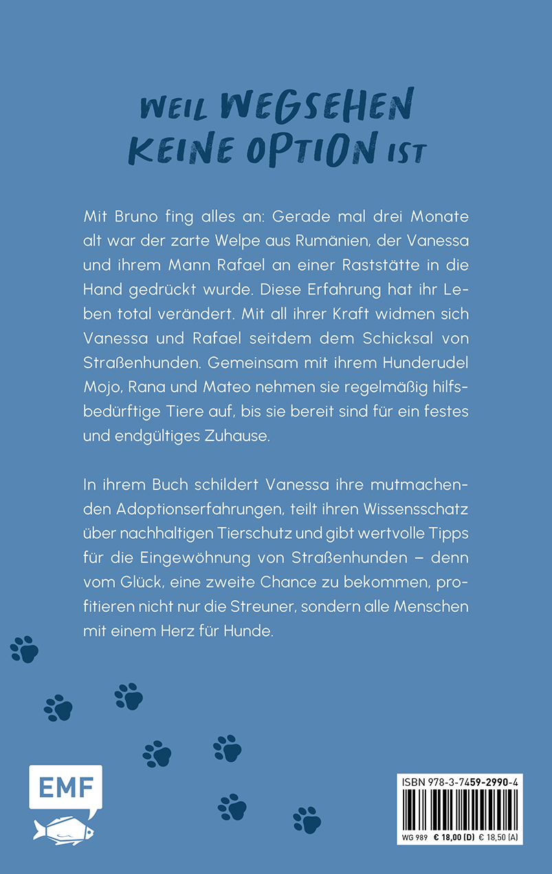 Heute sind Straßenhunde fester Bestandteil ihres Lebens geworden. Vanessa, Rafael und ihr Hunderudel Mojo, Rana und Mateo nehmen regelmäßig hilfsbedürftige Tiere aus Portugal auf, bis sie bereit für ein festes und endgültiges Zuhause sind. Eine herausfordernde und zugleich zutiefst erfüllende Aufgabe!