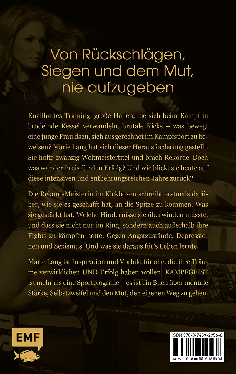 Marie Lang ist Inspiration und Vorbild für alle, die ihre Träume verwirklichen UND Erfolg haben wollen. KAMPFGEIST ist mehr als eine Sportbiografie - es ist ein Buch über mentale Stärke, Selbstzweifel und den Mut, seinen eigenen Weg zu gehen.