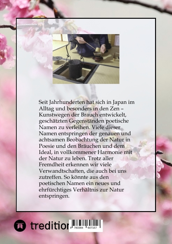 Seit Jahrhunderten hat sich in Japan im Alltag und besonders in den Zen - Kunstwegen der Brauch entwickelt, geschätzten Gegenständen poetische Namen zu verleihen. Viele dieser Namen entspringen der genauen und achtsamen Beobachtung der Natur in Poesie und Bräuchen und dem Ideal, in vollkommener Harmonie mit der Natur zu leben. Trotz aller Fremdheit erkennen wir viele Verwandtschaften, die auch bei uns zutreffen. So könnte aus den poetischen Namen ein neues und ehrfürchtiges Verhältnis zur Natur entspringen.Das Buch bringt Beispiele für die Poetischen Namen aus dem Bereich des Volksglaubens, der Tradition und der Kunst. Schwerpunkt der Künste ist der japanische Teeweg, der immer wieder ausführlich besprochen wird.