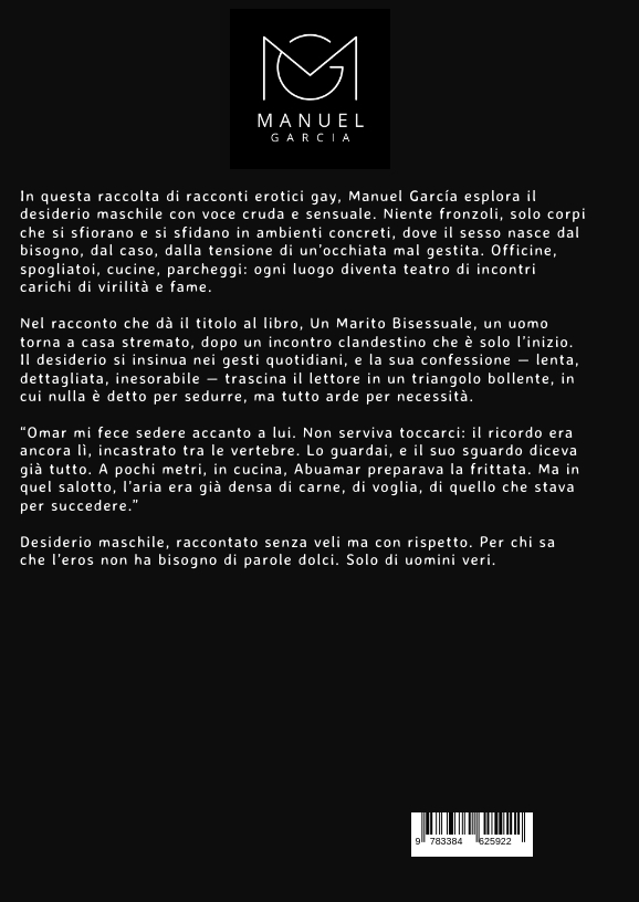 Manuel García è un autore audace e provocatorio nel panorama letterario erotico gay. Nato in una piccola città costiera, ha sempre avuto una forte passione per la scrittura e una vivida immaginazione che lo ha spinto a esplorare gli angoli più oscuri dell'intimità maschile. Fin da giovane, Manuel ha sentito la chiamata a liberarsi dalle catene delle convenzioni sociali, a sfidare i tabù e a dare voce ai desideri inconfessabili degli uomini gay. Attraverso la sua scrittura sensuale e coinvolgente, ha creato un mondo letterario unico in cui erotismo e piacere si intrecciano con il desiderio di libertà e di esplorazione personale. Il suo lavoro porta i lettori oltre i limiti della normalità, immergendoli in un universo intenso e provocatorio dove le barriere vengono abbattute e i desideri più nascosti possono finalmente emergere. Manuel cerca di coinvolgere emotivamente i suoi lettori, di farli risuonare con le sue parole e di creare un legame profondo attraverso le pagine dei suoi libri. Con il suo stile incisivo e la capacità di catturare l'essenza dei momenti erotici, Manuel García è diventato una voce di spicco nel genere dell'erotismo gay. Che si tratti di racconti o di romanzi, le sue opere sono amate da un vasto pubblico di uomini gay adulti che cercano una lettura che vada oltre il semplice intrattenimento, stimolandoli intellettualmente e coinvolgendoli emotivamente. Manuel si è guadagnato una reputazione per la sua onestà e audacia nel trattare argomenti tabù, sempre con rispetto e sensibilità verso i suoi personaggi. I suoi scritti sono un invito a esplorare il mondo dell'erotismo, a liberare la propria sessualità e ad abbracciare pienamente i piaceri della vita. Oltre a essere un autore di successo, Manuel García è anche un sostenitore dei diritti LGBT+, promuovendo attivamente l'accettazione e la diversità attraverso la sua arte. Il suo obiettivo è aprire le menti, sfidare i pregiudizi e creare un mondo in cui l'amore e il desiderio siano liberi da discriminazioni e restrizioni. Con il suo talento innato e la sua passione per la scrittura erotica gay, Manuel García continua a influenzare il genere letterario, ispirando e intrattenendo i lettori di tutto il mondo con le sue storie accattivanti, sensuali e indimenticabili.