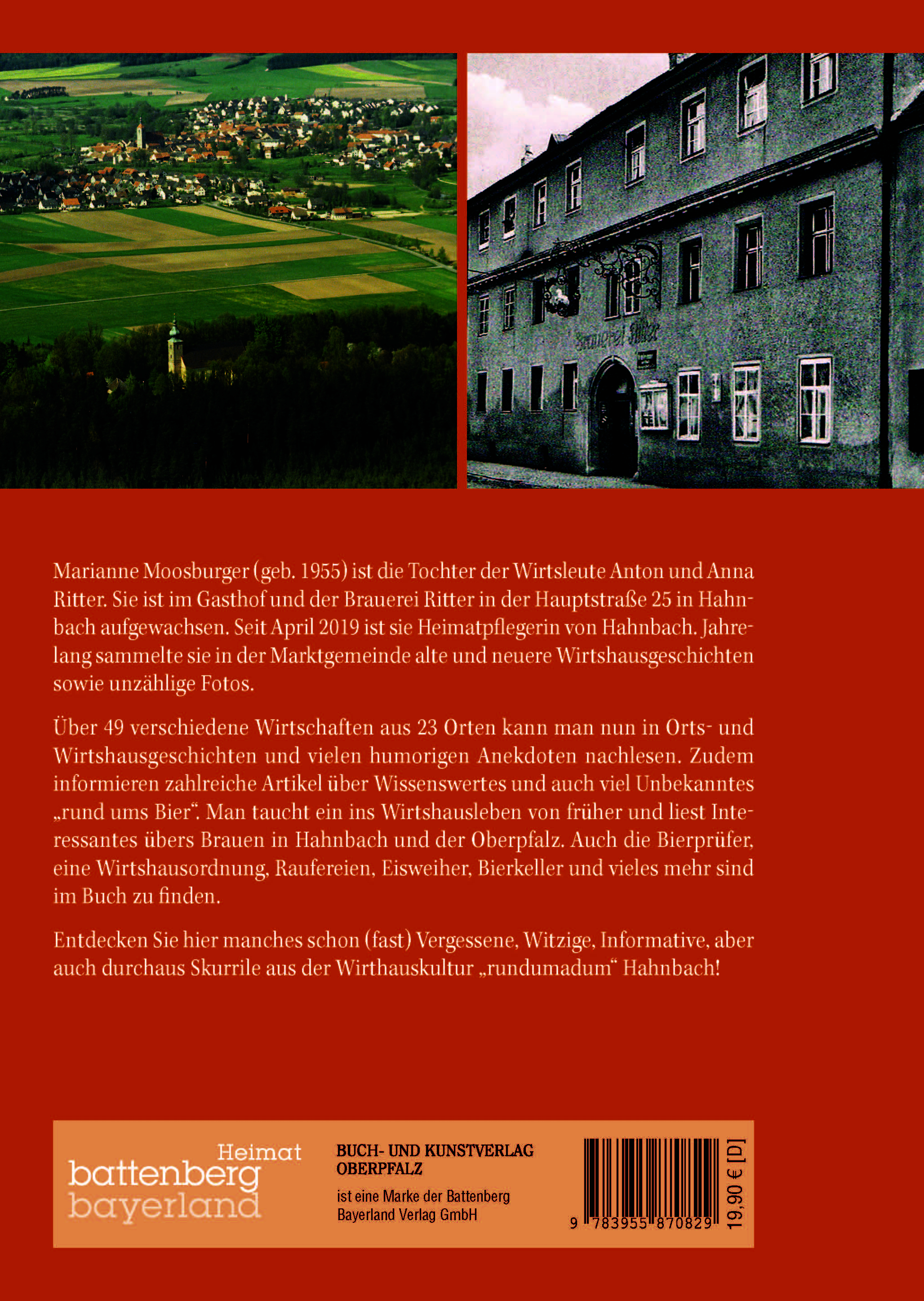 Marianne Moosburger (geb. 1955) ist die Tochter der Wirtsleute Anton und Anna Ritter. Sie ist im Gasthof und der Brauerei Ritter in der Hauptstraße 25 in Hahnbach aufgewachsen. Seit April 2019 ist sie Heimatpflegerin von Hahnbach. Jahrelang sammelte sie in der Marktgemeinde alte und neuere Wirtshausgeschichten sowie unzählige Fotos. Über 49 verschiedene Wirtschaften aus 23 Orten kann man nun in Orts- und Wirtshausgeschichten und vielen humorigen Anekdoten nachlesen. Zudem informieren zahlreiche Artikel über Wissenswertes und auch viel Unbekanntes "rund ums Bier". Man taucht ein ins Wirtshausleben von früher und liest Interessantes übers Brauen in Hahnbach und der Oberpfalz. Auch die Bierprüfer, eine Wirtshausordnung, Raufereien, Eisweiher, Bierkeller und vieles mehr sind im Buch zu finden. Entdecken Sie hier manches schon (fast) Vergessene, Witzige, Informative, aber auch durchaus Skurrile aus der Wirthauskultur "rundumadum" Hahnbach!