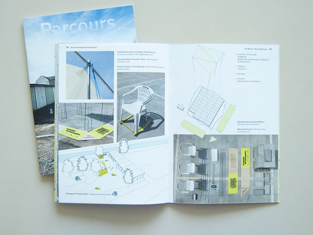Die Publikation PARCOURS dokumentiert den gemeinsamen Projektprozess mit Exkursion, Workshops und insbesondere die Arbeiten, die innerhalb des Semesterverlaufs von den 14 Studierenden entwickelt und umgesetzt wurden. Der Entwurf „Trichter voller Erinnerung“ und Teile weiterer Entwürfe finden im Kulturhauptstadtprogramm ihre Umsetzung.