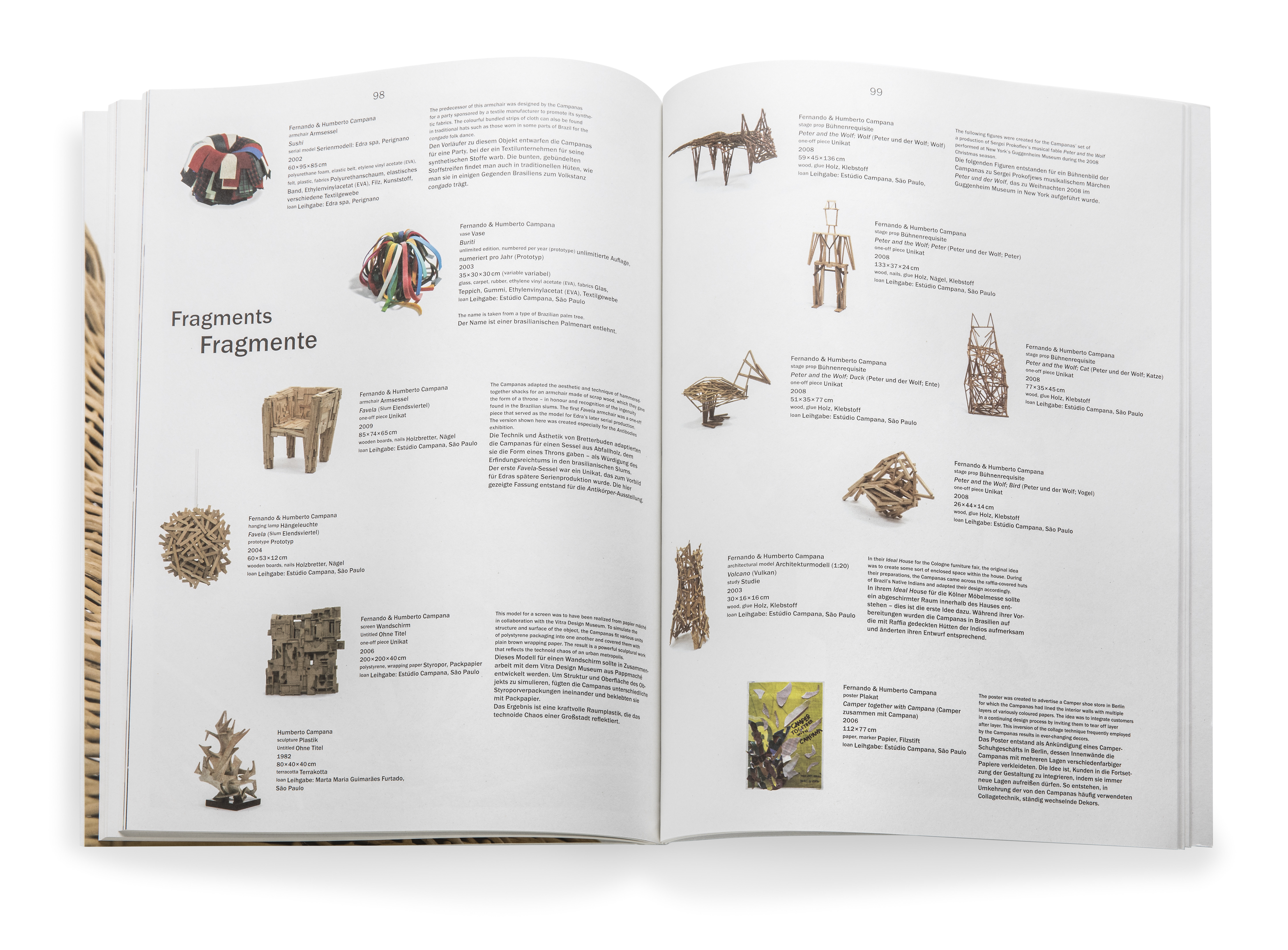 Die Publikation, die die gleichnamige Retrospektive des Vitra Design Museums begleitet, ist die erste umfassende Darstellung des Werkes und stellt nicht nur die wichtigsten Entwürfe vor sondern untersucht anhand von Prototypen und Experimenten sowie unterschiedlicher Berichte auch den Arbeitsprozess. Der Umfang und die enorme Vielfalt des Werks von Fernando und Humberto Campana, zu dem in den letzten Jahren großartige Stücke hinzukamen, blieben bislang weitgehend unbekannt, da keine Monografie erhältlich ist und auch die zahlreich erschienenen Zeitschriftenartikel kaum den Versuch unternommen haben, die Kerngedanken dieses komplexen Werkes zusammenzustellen.