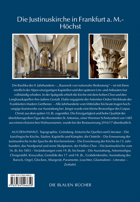 Die Justinuskirche in Frankfurt am Main-Höchst blickt auf eine lange Geschichte zurück. Die Basilika des 9. Jahrhunderts mit ihren nördlich der Alpen einzigartigen Kapitellen ist neben den späteren Um- und Anbauten nahezu vollständig erhalten, was allein schon einen Besuch rechtfertigt. In der späten Gotik erhielt die Kirche mit dem hohen Chor und den Langhauskapellen nach außen hin weitgehend ihre heutige Gestalt. Maßgebend dabei war das Engagement der in Höchst ansässigen, sehr bedeutenden Niederlassung des Antoniter-Ordens. In der Innenausstattung der ununterbrochen katholischem Gottesdienst vorbehaltenen Kirche aber haben alle Jahrhunderte vom Mittelalter bis ins 20. Jahrhundert ihre Spuren und hochrangige Kunstwerke hinterlassen: Altäre, Grabdenkmäler, Skulpturen und eine reiche liturgische Ausstattung, darunter die romanischen Skulpturen des 11. Jahrhunderts und der späten Gotik sowie der nach Motiven Martin Schongauers gemalte Kreuzaltar von 1485 und die gewaltige Schaubühne des barocken Hochaltares sowie eine der besten Konzertorgeln Deutschlands. Seine lange Geschichte und qualitätvollen Kunstwerke haben dem Gotteshaus den Ehrentitel "Bauwerk von nationaler Bedeutung" eingetragen. In den vergangenen Jahrzehnten wurde die Justinuskirche mit viel Engagement und großen Spendenmitteln umfassend restauriert. Sie präsentiert sich und ihre Kunstwerke heute in altem Glanz. Erst im März 2017 kam die überlebensgroße Skulptur des thronenden St. Antonius Abbas aus der Restaurierungswerkstatt zurück in die Kirche, wobei sich die geradezu einmalige Besonderheit und hohe Qualität dieses 1485 datierten und ausschließlich aus einem einzigen Walnuss-Baumstamm gearbeiteten Kunstwerks offenbarte.Das Buch vermittelt einem breiten Leserkreis die lange und faszinierende Geschichte der Kirche und erläutert die zahlreichen herausragenden Kunstwerke in den alten Mauern. Zugleich wird dem Leser die neueste Forschung und Information über die Kirche mit zahlreichen Texten und 245 Bildern geboten.