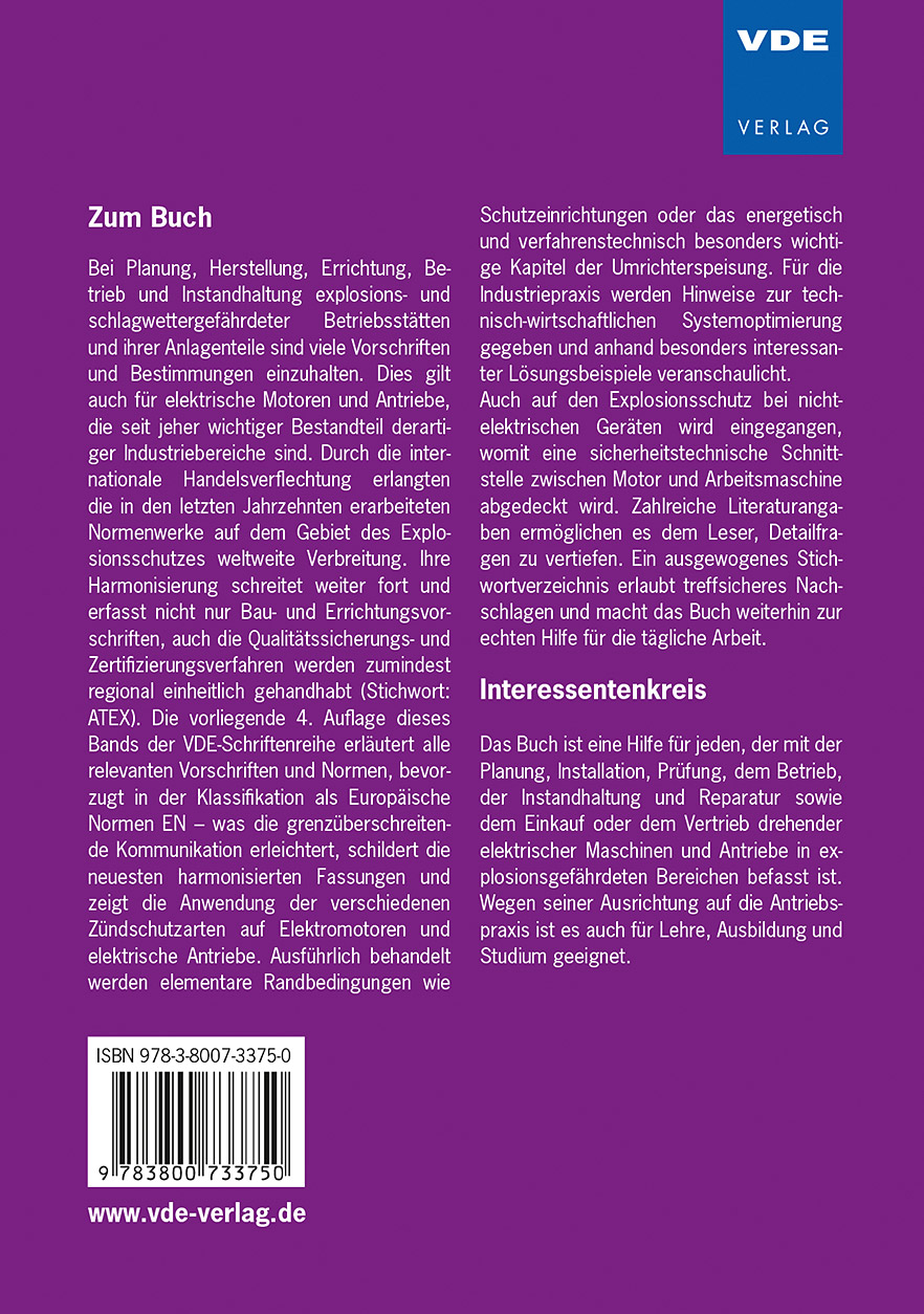 "Das Buch kann praktischer Ratgeber für die alltägliche Arbeit sein." (Elektropraktiker; 7/2014) "Das Buch ist eine Hilfe für jeden, der mit der Planung, Installation, Prüfung und dem Betrieb drehender elektrischer Maschinen befasst ist." (aktuelletechnik.ch 6/2014)
