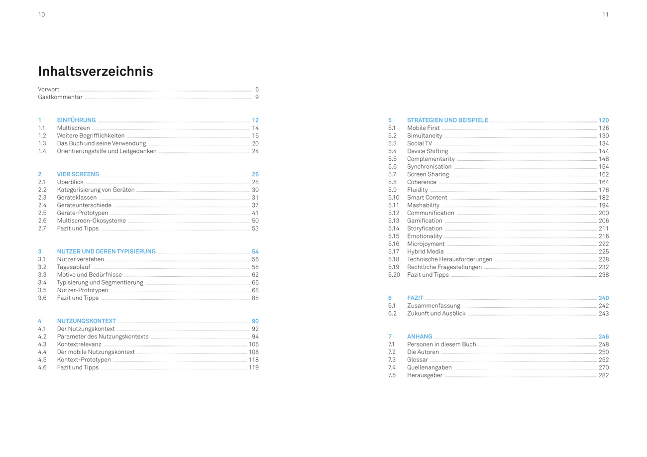 Über die Autoren: Wolfram Nagel (www.wolframnagel.com) arbeitet als Designer und Konzepter (Head of Design and Corporate Communication) bei der digiparden GmbH. Er ist ausgebildeter Mediengestalter für Digital- und Printmedien und studierte Informationsgestaltung (Diplom) und Design Management (Master of Arts) an der Hochschule für Gestaltung in Schwäbisch Gmünd. Er ist Mit-Initiator des Design Methoden Finders und beschäftigt sich seit vielen Jahren mit den Themen Multiscreen und Informationsmanagement und betreut hauptverantwortlich das Multiscreen Experience Projekt. Erste Gedanken und Ansätze dazu entstanden im Rahmen seiner Diplomarbeit zwischen 2005 und 2006. Valentin Fischer (www.valentinfischer.com) hat sein Studium an der HfG Schwäbisch Gmünd mit dem Master of Arts in 'Communication Planning & Design' abgeschlossen. Nach Festanstellungen als Interface Designer in München arbeitet er freiberuflich in seiner Heimatstadt Stuttgart. Seit 2007 ist er als Illustrator tätig. Er ist Mit-Initiator des Multiscreen Experience Projekts und des Design Methoden Finders. Herausgeber: Die digiparden GmbH gibt es seit 2001. Ob als Spezialisten für Content Management, als Experten für eCommerce oder Produktdatenmanagement - die Expertise und Lösungen der digiparden sind immer dann gefragt, wenn Projekte nicht von kurzer Laufzeit, sondern von strategischer Bedeutung für die Kunden sind. Die digiparden verstehen sich als Partner für die Entwicklung einer strategischen und langfristig angelegten Service-Architektur im Umfeld sich stetig wandelnder digitaler Kommunikation.