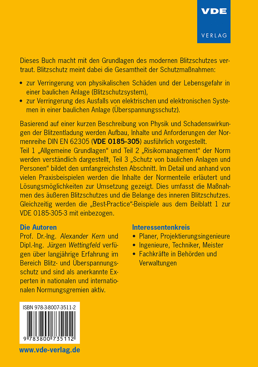 Prof. Dr.-Ing. Alexander Kern und Dipl.-Ing. Jürgen Wettingfeld verfügen über langjährige Erfahrung im Bereich Blitz- und Überspannungsschutz und sind als anerkannte Experten in nationalen und internationalen Normungsgremien aktiv.