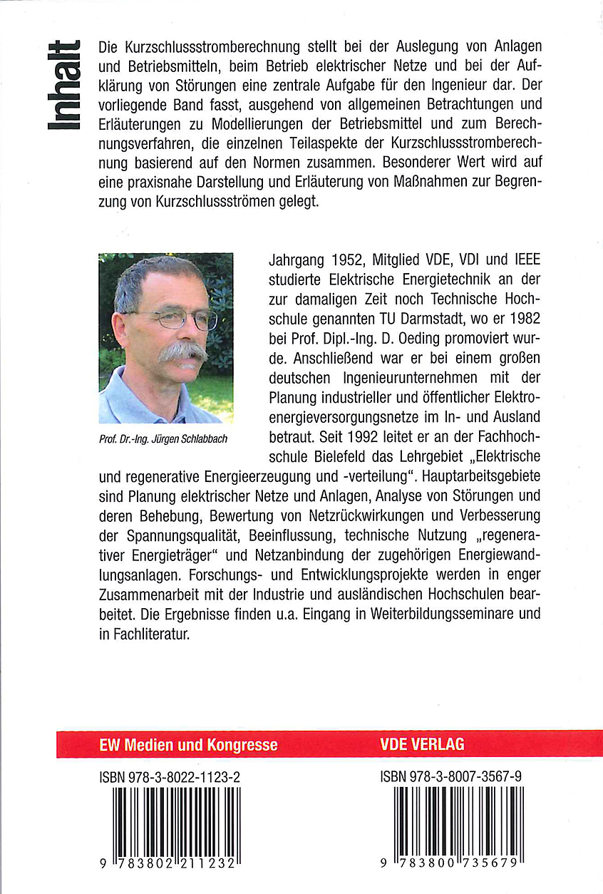 Die Kurzschlussstromberechnung stellt bei der Auslegung von Anlagen undBetriebsmitteln, beim Betrieb elektrischer Netze und bei der Aufklärungvon Störungen eine zentrale Aufgabe für den Ingenieur dar. Der vorliegendeBand fasst, ausgehend von allgemeinen Betrachtungen und Erläuterungenzu Modellierungen der Betriebsmittel und zum Berechnungsverfahren,die einzelnen Teilaspekte der Kurzschlussstromberechnung basierendauf den Normen zusammen. Besonderer Wert wird auf eine praxisnaheDarstellung und Erläuterung von Maßnahmen zur Begrenzung von Kurzschlussströmengelegt.