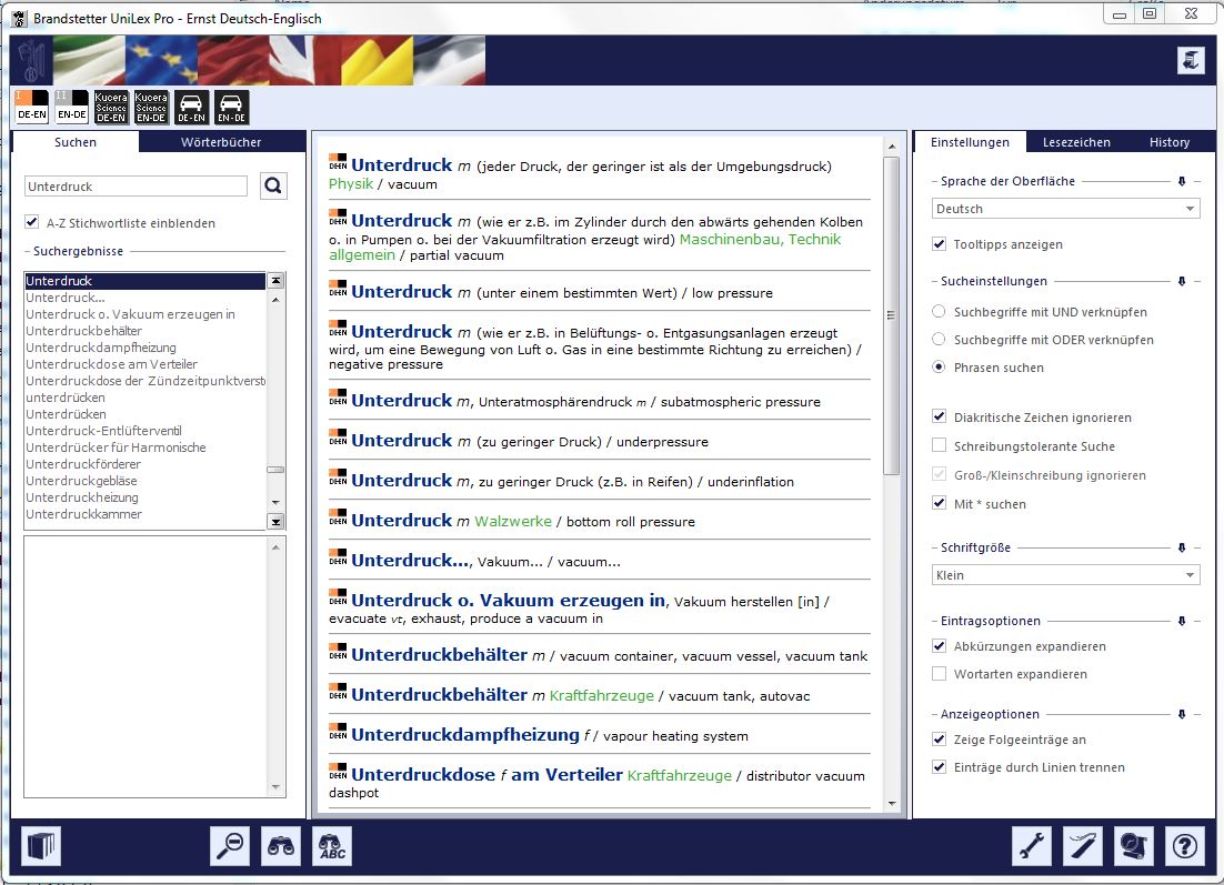 Das Wörterbuch erscheint unter der neuen UniLex Pro - Oberfläche:
