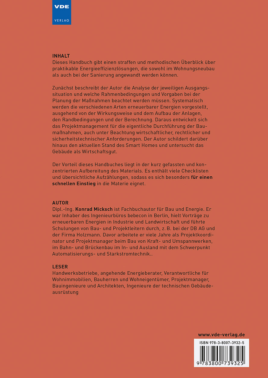 | Schlagworte | Bauprojektplanung • Energieeffizienz • Energieeinsparung • Energierückgewinnung • Erneuerbare Energien • Investitionskosten • Wertermittlung • Wohnungsbau • Zustandsanalyse |