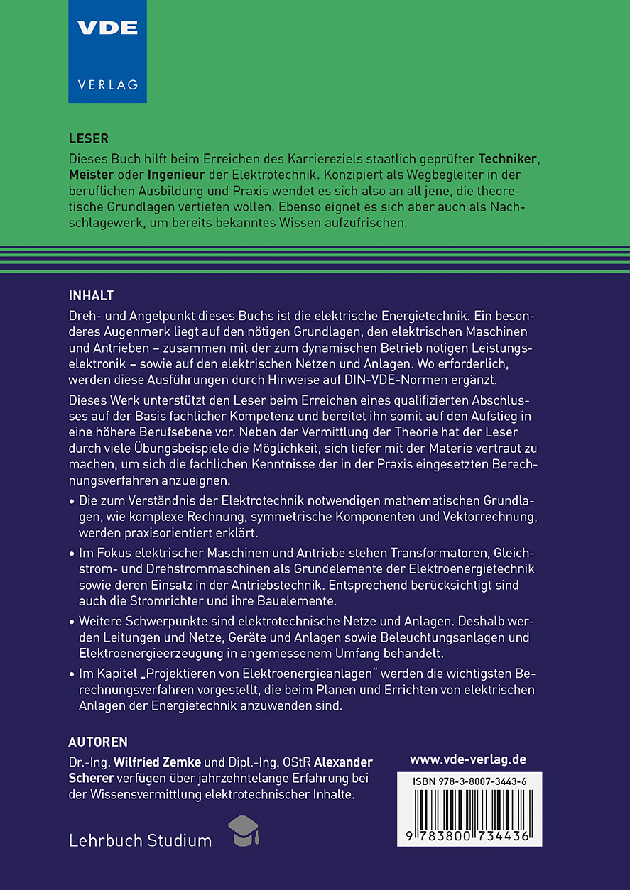 Dr.-Ing. Wilfried Zemke hat Elektrotechnik an der Ingenieurschule in Berlin studiert. Nach einer Industrietätigkeit qualifizierte er sich im Rahmen eines Fernstudiums zum Diplomingenieur und wurde durch eine außerplanmäßige Aspirantur zum Doktoringenieur promoviert. Seit 1990 lehrt er an der Technikerschule in München. Dipl.-Ing. OStR Alexander Scherer hat Elektro- und Informationstechnik an der Universität Karlsruhe TH (jetzt KIT) studiert. Nach mehrjähriger Industrietätigkeit wechselte er in den Schuldienst und vermittelt seitdem elektrotechnische Inhalte den Auszubildenden in der Berufsschule, den Schülern am Technischen Gymnasium und den Teilnehmern an den Ausbildungsgängen der Fachschule für Technik.
